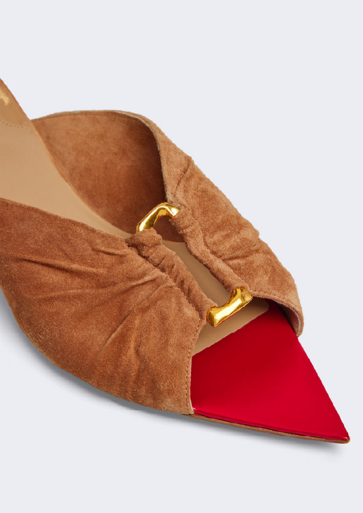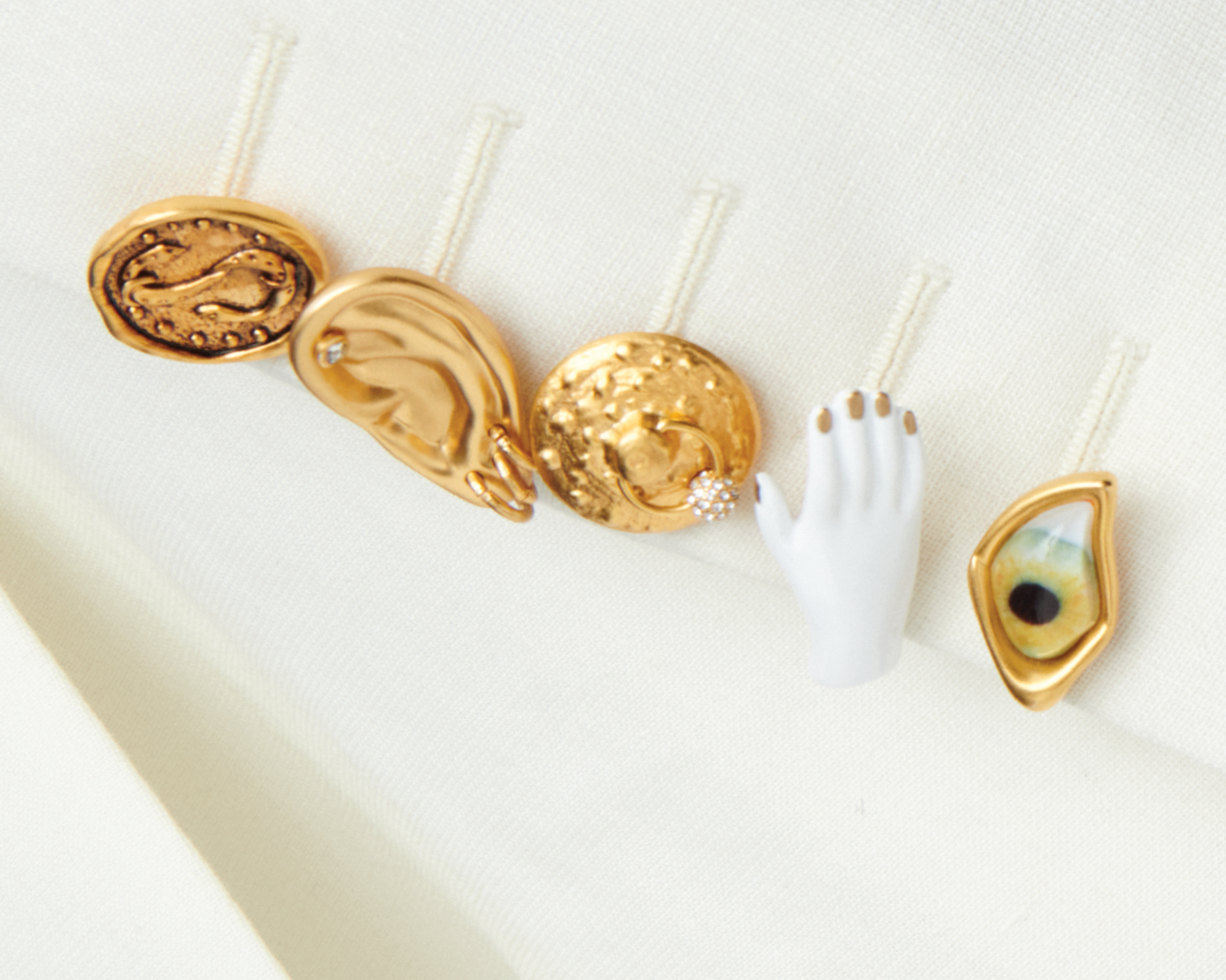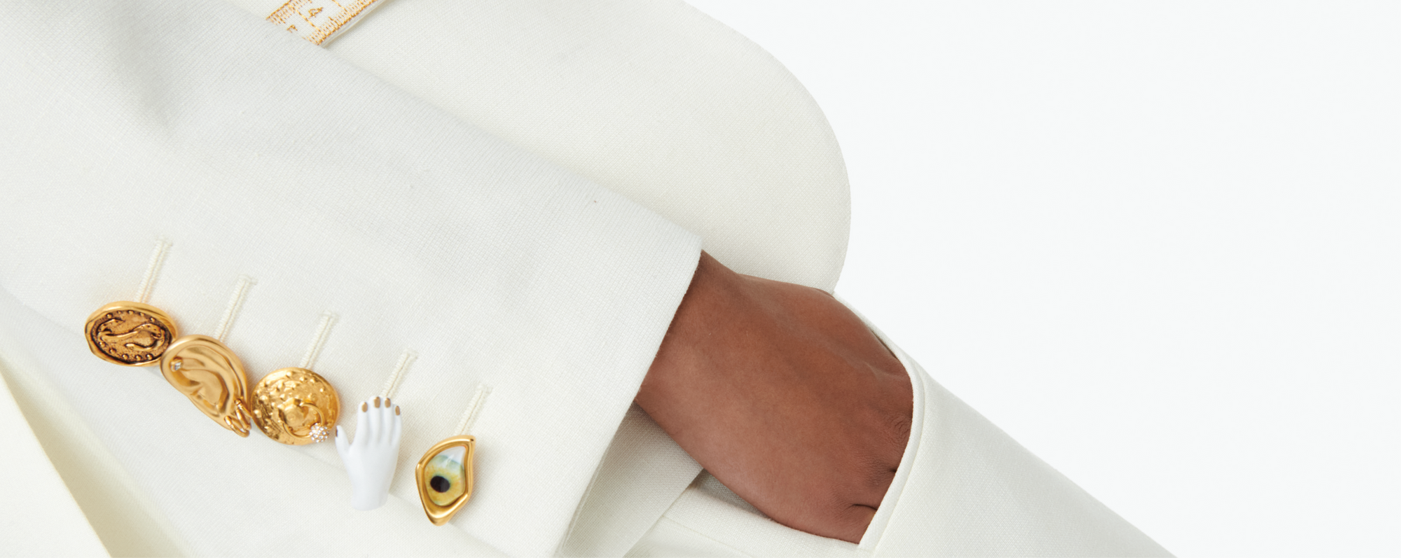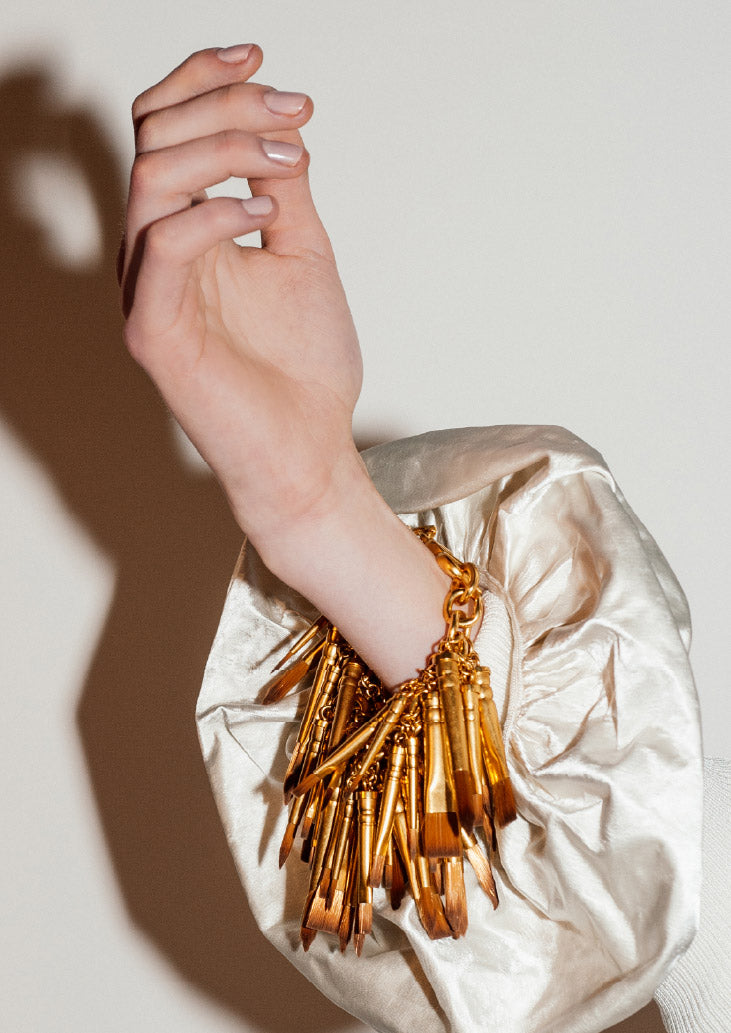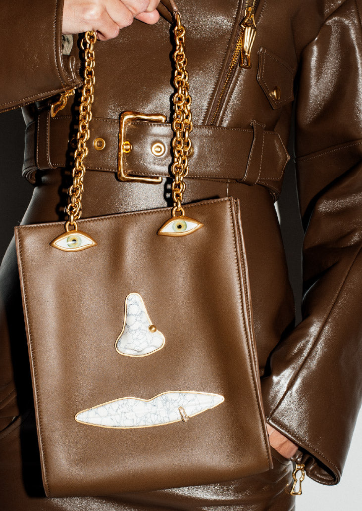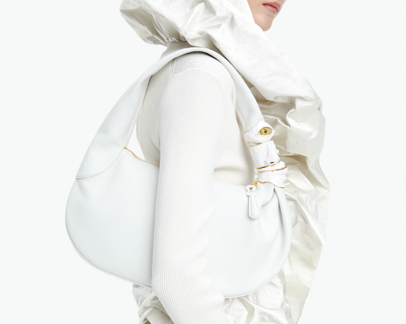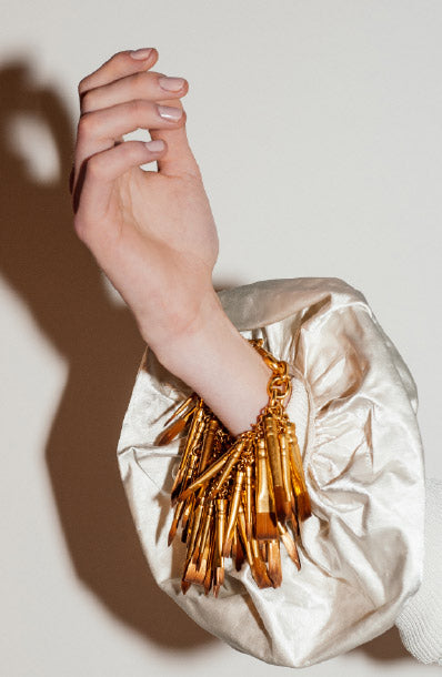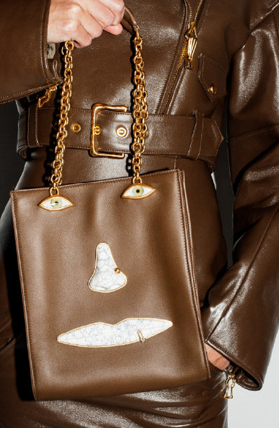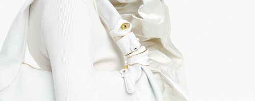Conçu à l’origine par Elsa Schiaparelli elle-même comme un fermoir sur un sac à main afin d’apporter une aura de mystère à cet objet du quotidien, le trou de serrure est un code iconique de la Maison. Daniel Roseberry continue d’utiliser cet emblème au travers de ses collections sur des sacs, des bijoux, des chaussures, des boutons et des broderies.