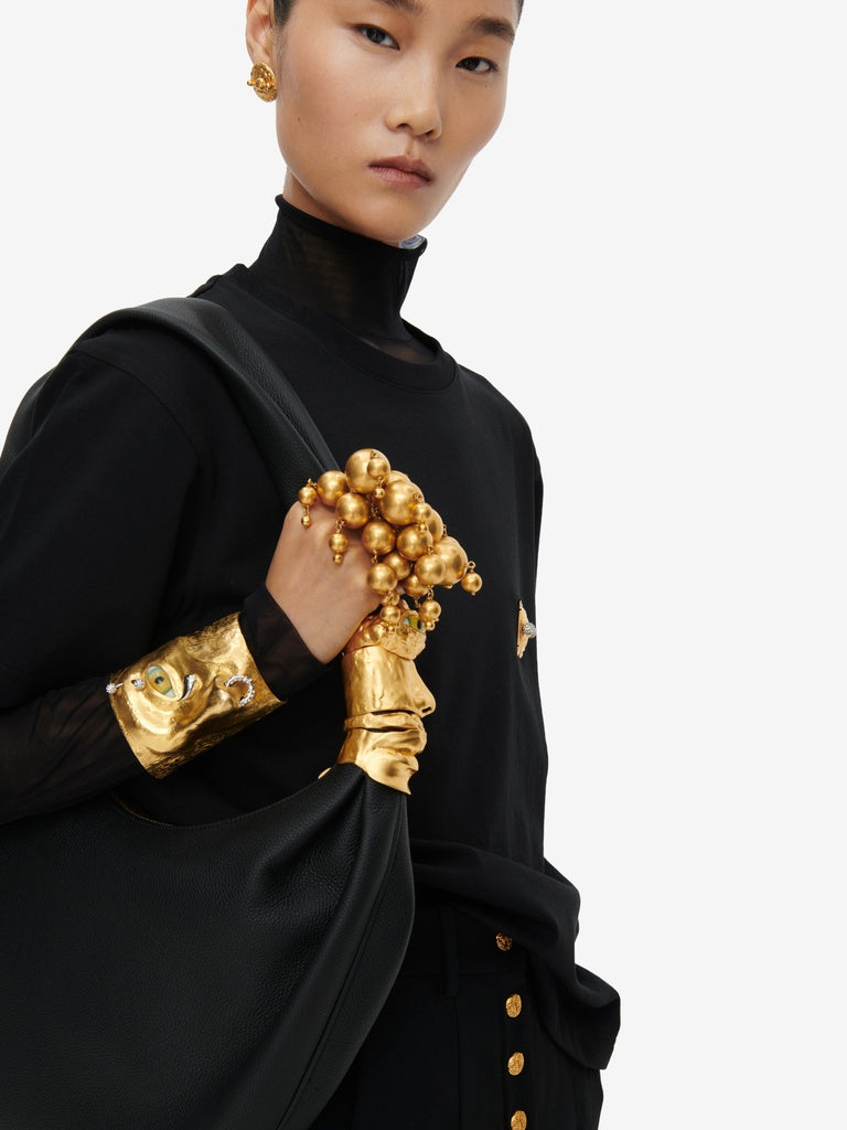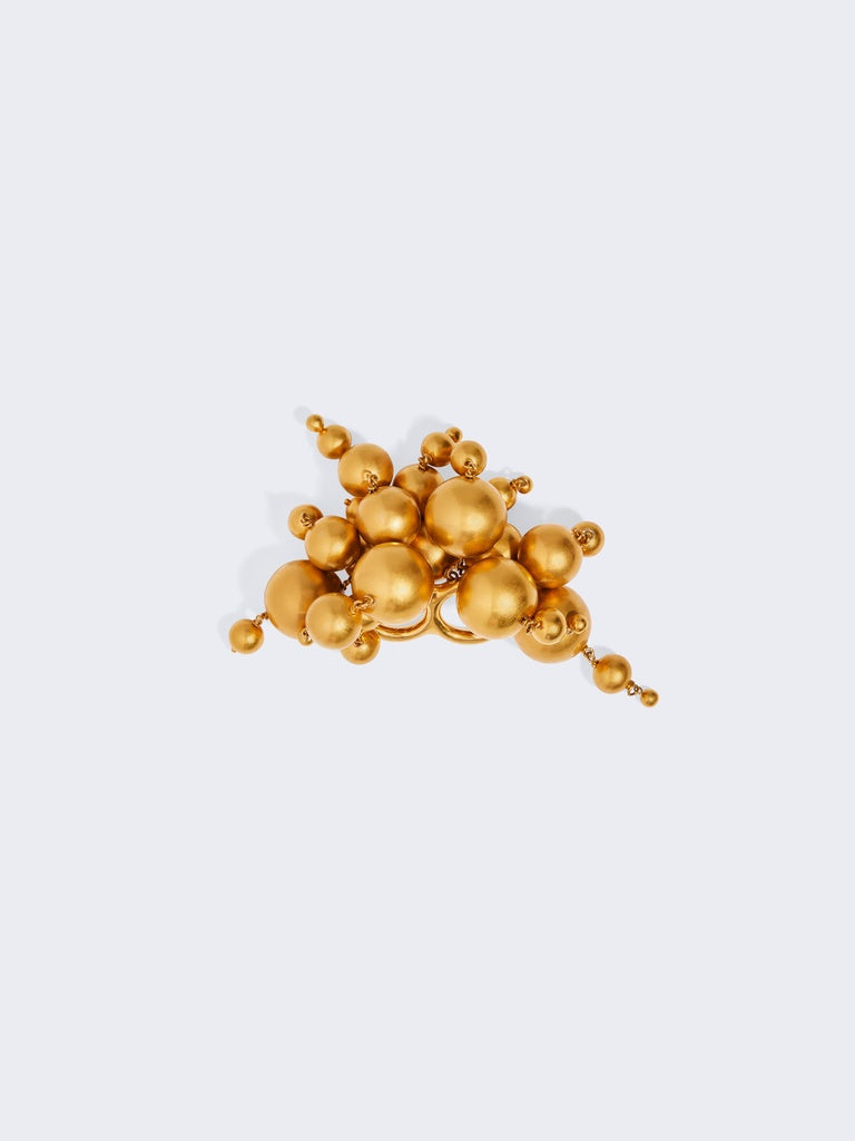 Cette bague en laiton doré à double anneau représentant un essaim de sphères agglomérées s'inspire des formes organiques de la saison. Elle est disponible en taille 54.