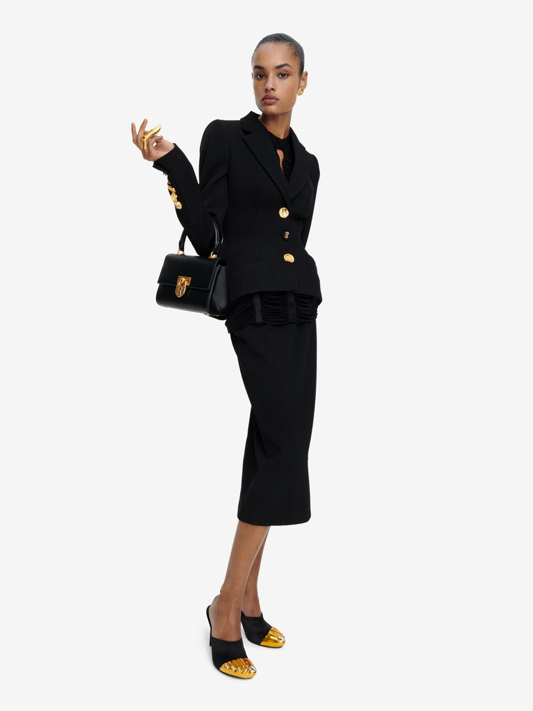 Il est rehaussé d'un fermoir Cadenas, de chaînes décoratives et d'une Clé bijou signature en métal doré.