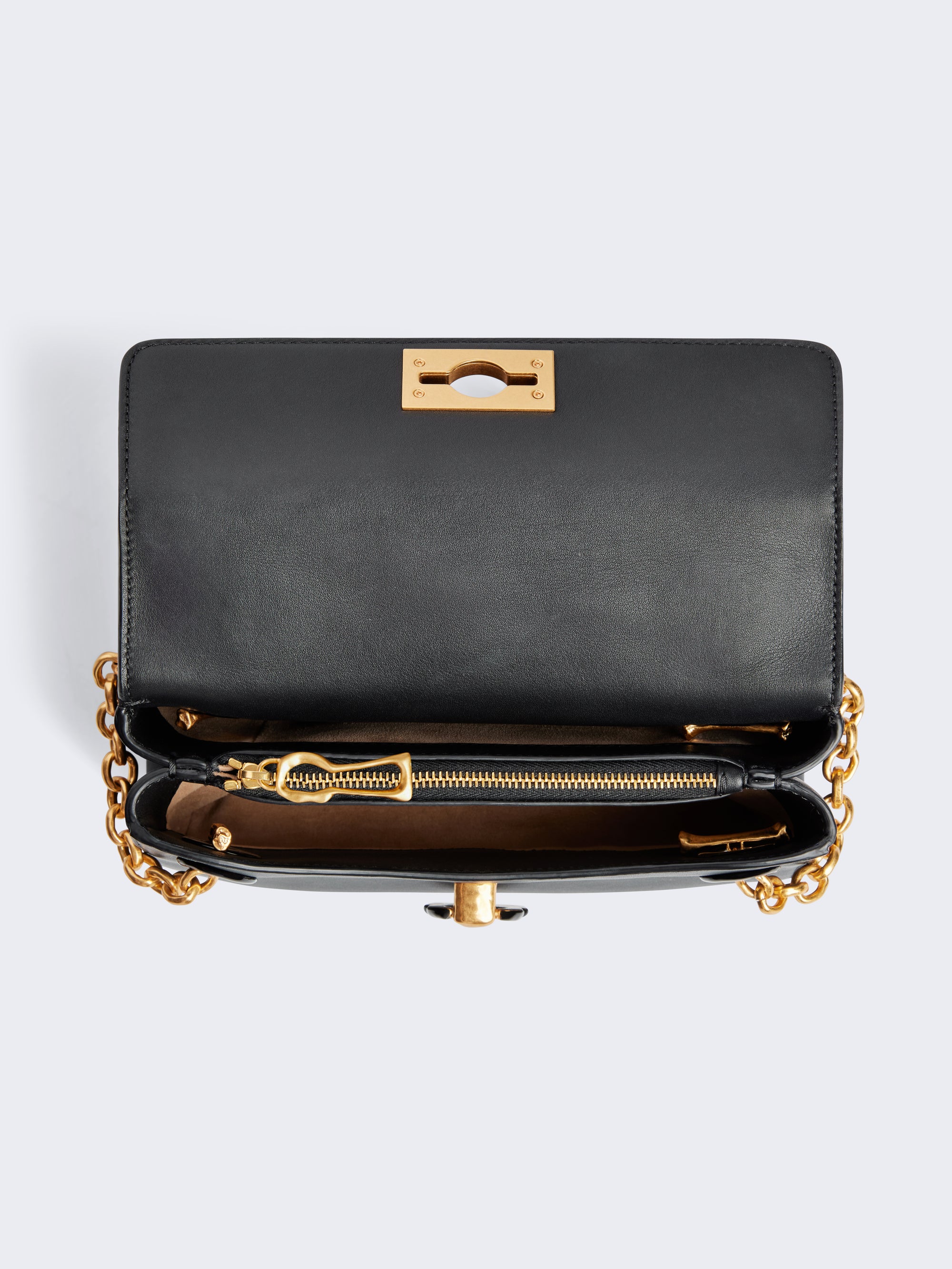 Ce mini sac Secret bijoux souple est confectionné en cuir de veau grainé noir.