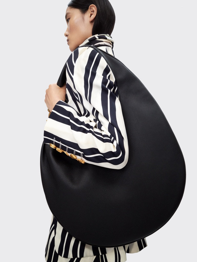 Cette veste droite a été réalisée en viscose imprimée pinceau écru et noir. Elle est décorée d'un fermoir Cadenas signature en laiton doré martelé et de boutons bijoux en bas de manches.