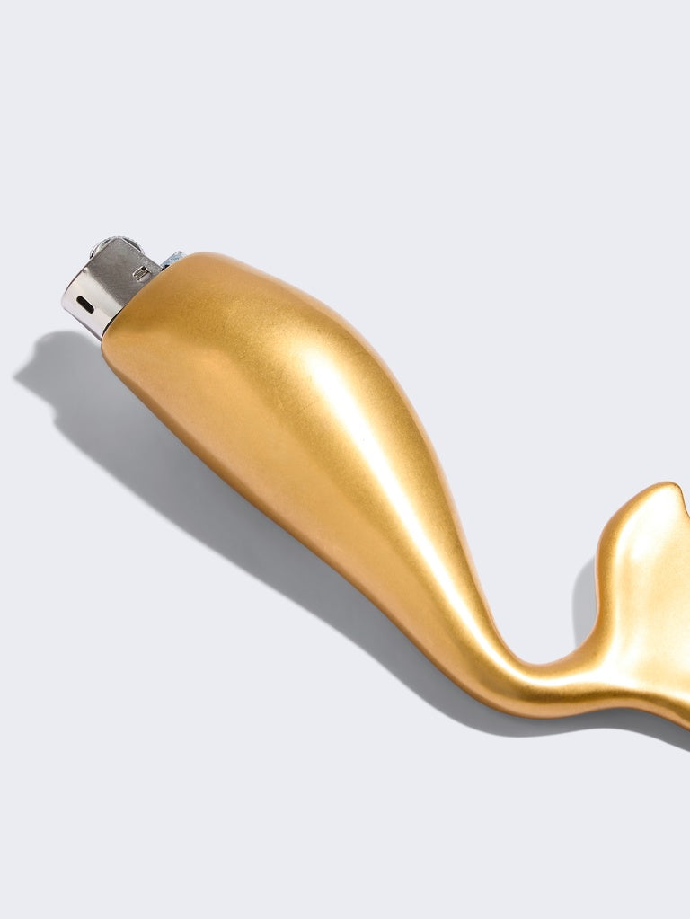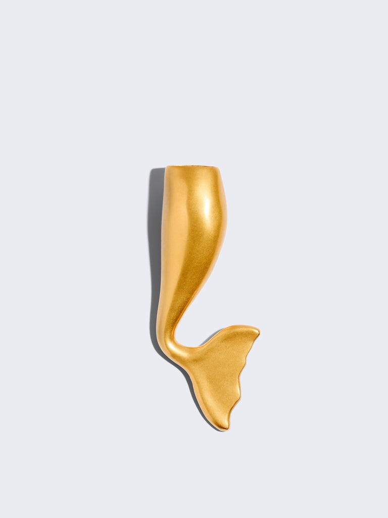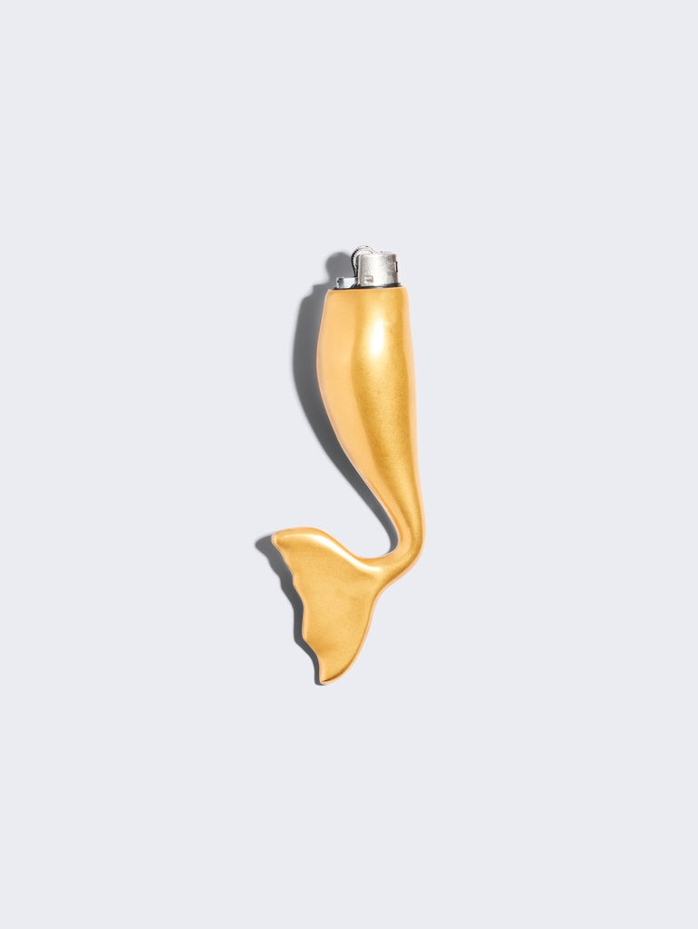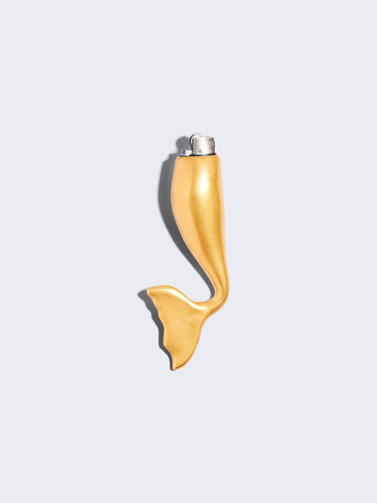 This handmade lighter holder, inspired by a mermaid's tail in gilded brass, draws on the surrealist aesthetic of the House.