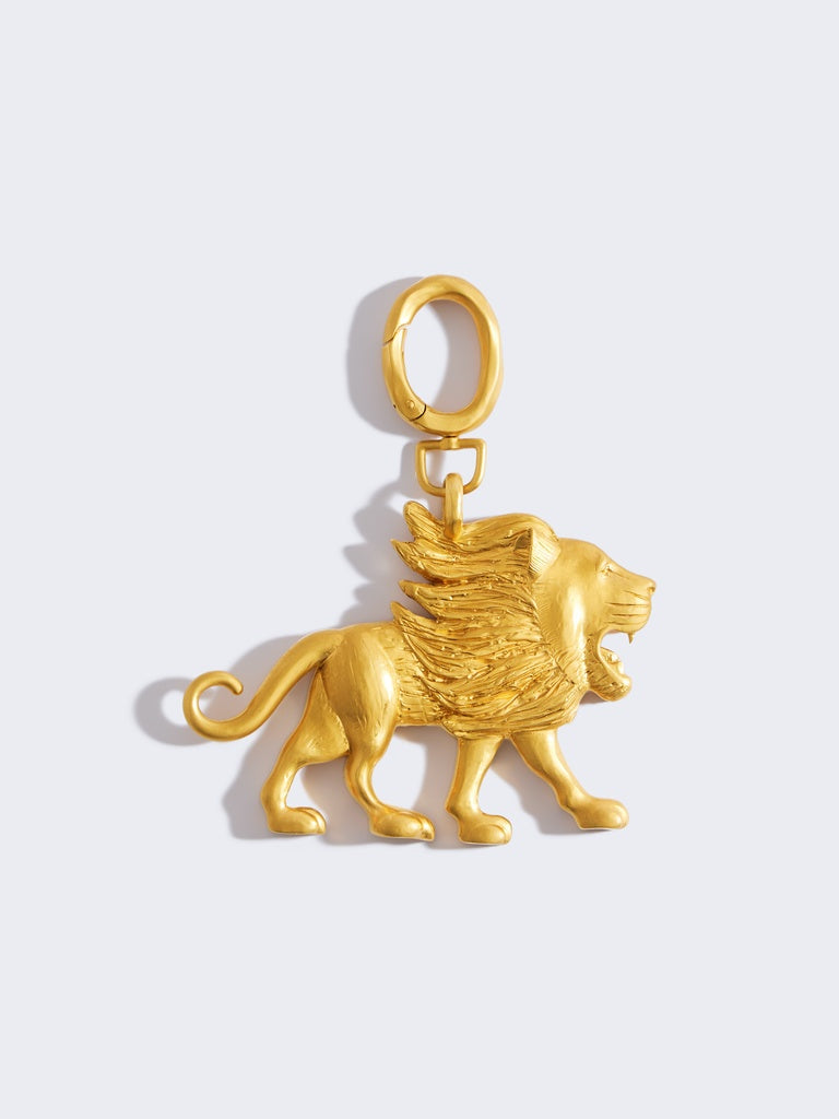 This hammered brass keychain with a gold finish is inspired by Elsa Schiaparelli's passion for the signs of the zodiac. It can be attached to keys, slipped onto a belt loop, or clipped to a bag to add a touch of Schiaparelli magic to any outfit.