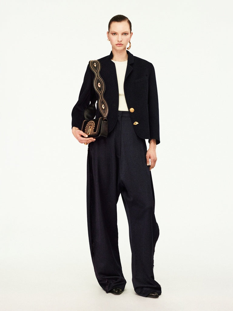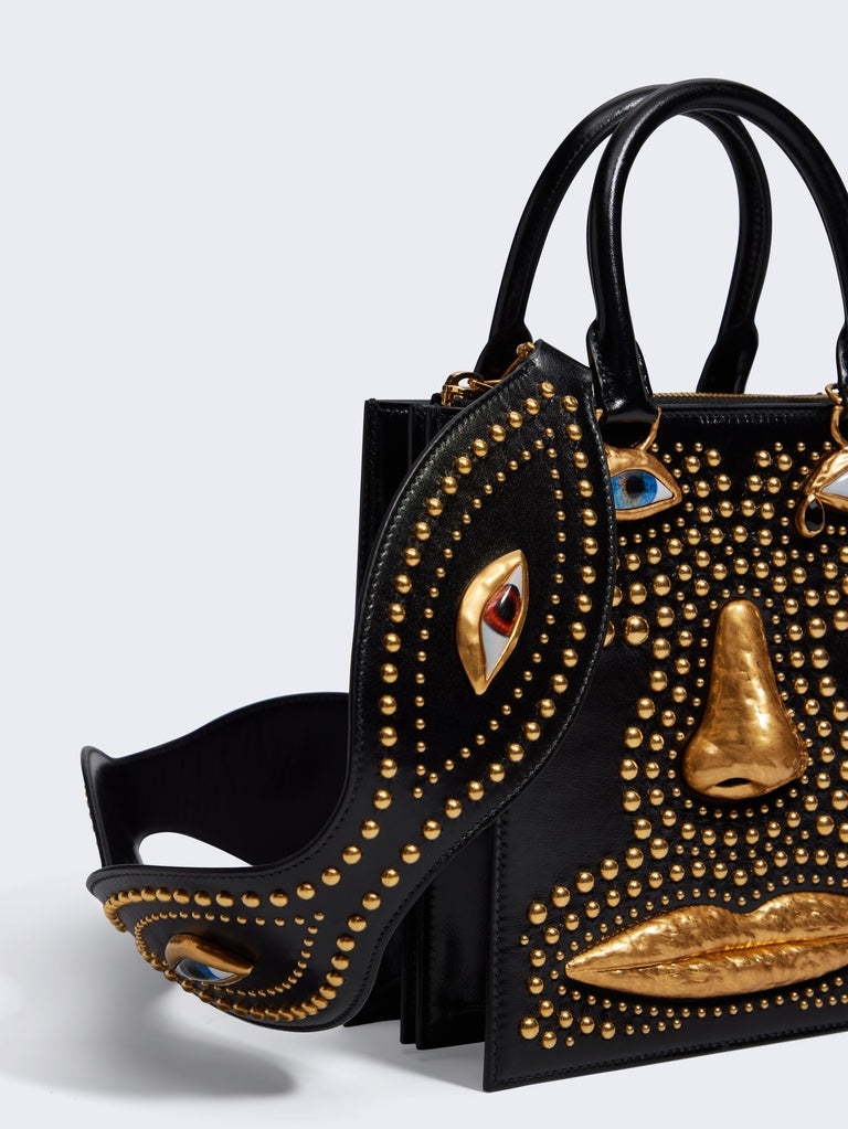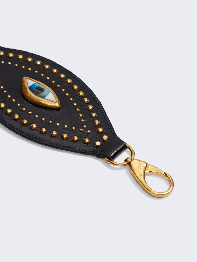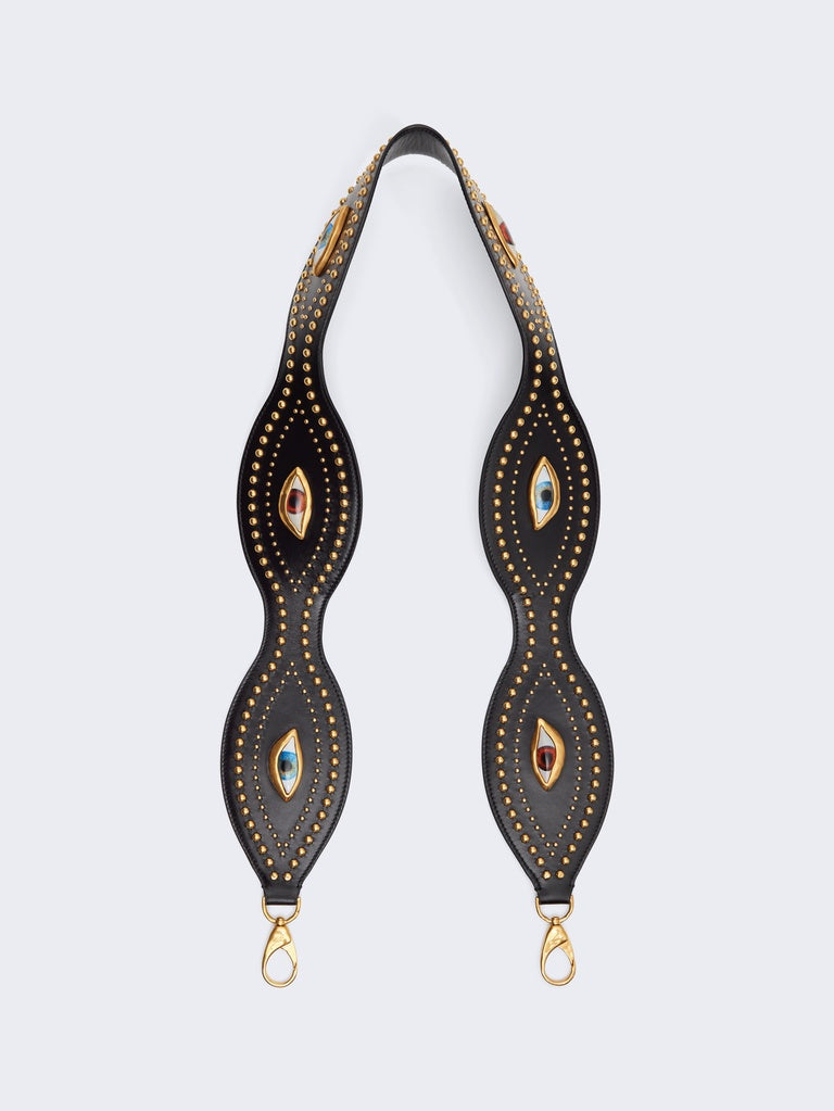 This detachable western-inspired shoulder strap is made of glossy calfskin leather decorated with studs and gold-tone metal Eye jewels.