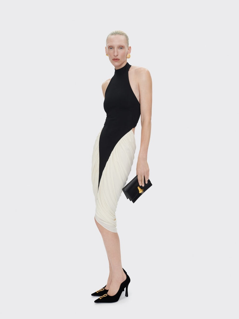 It can be worn as a clutch or with the removable gold chain shoulder strap.