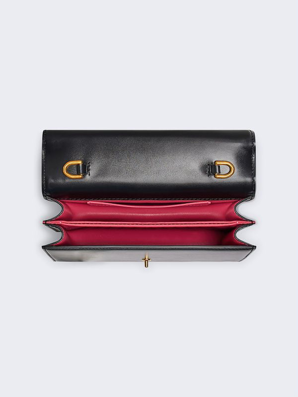 This miniature shoulder bag is made of red calfskin leather.