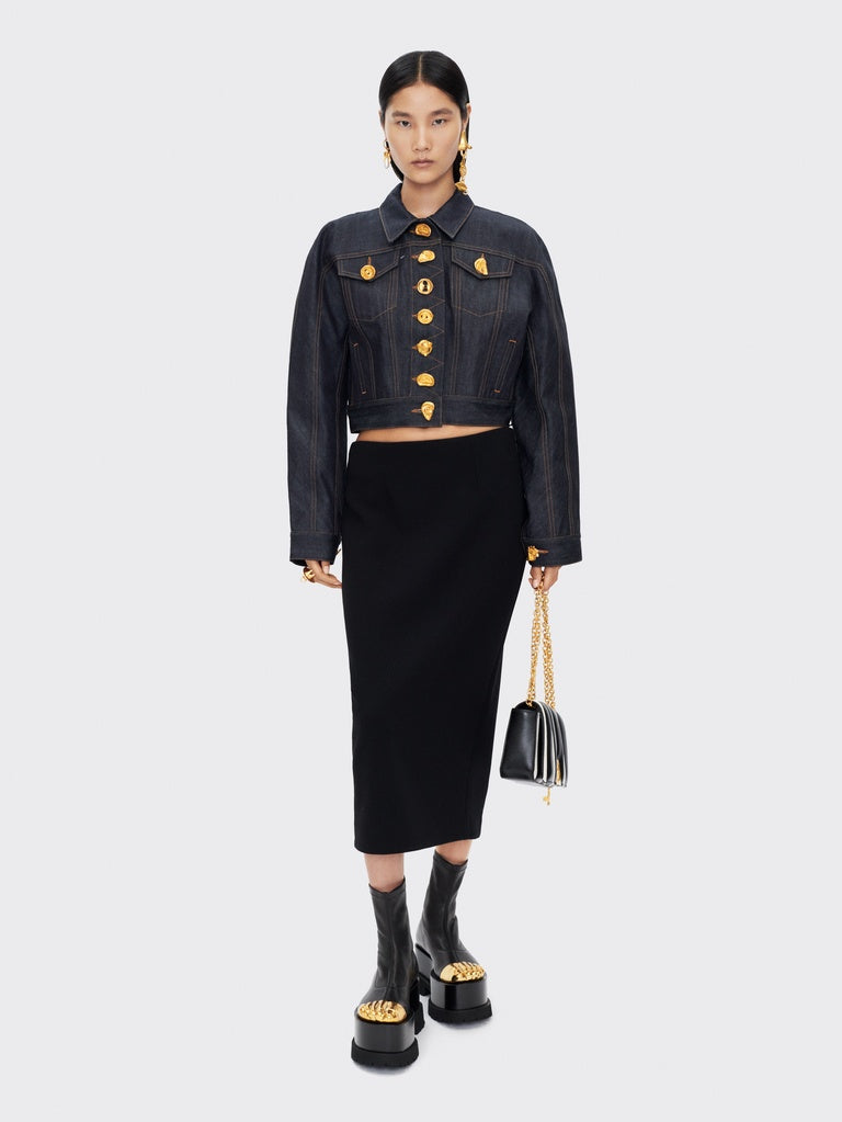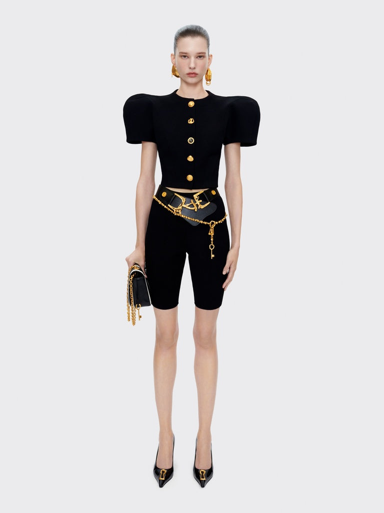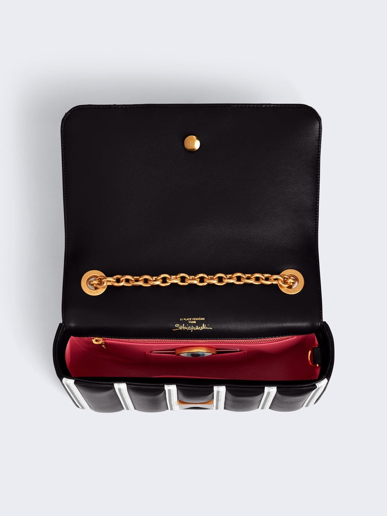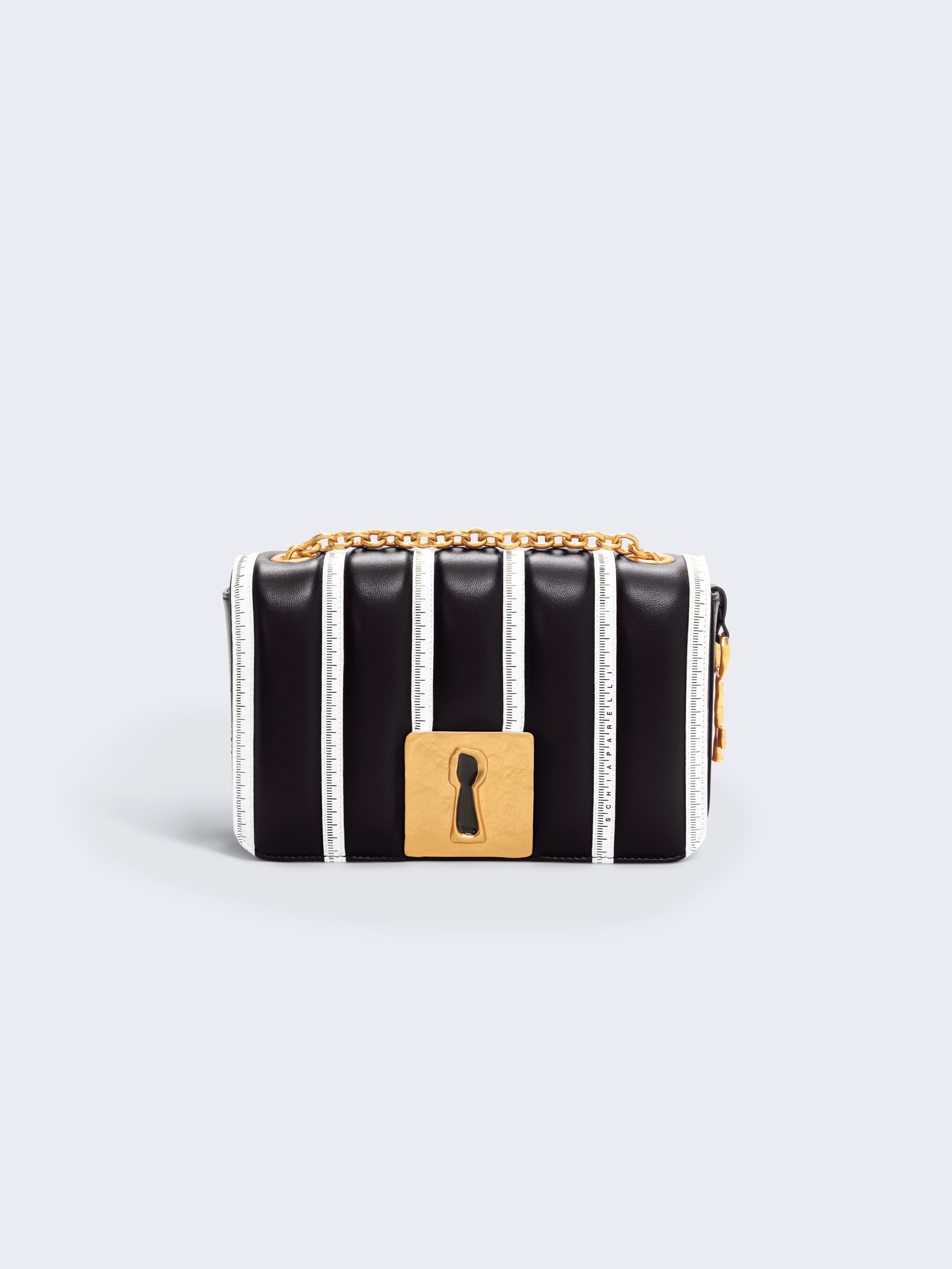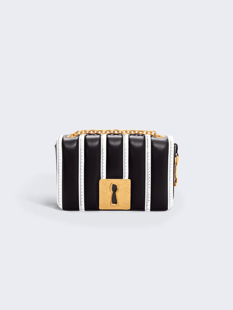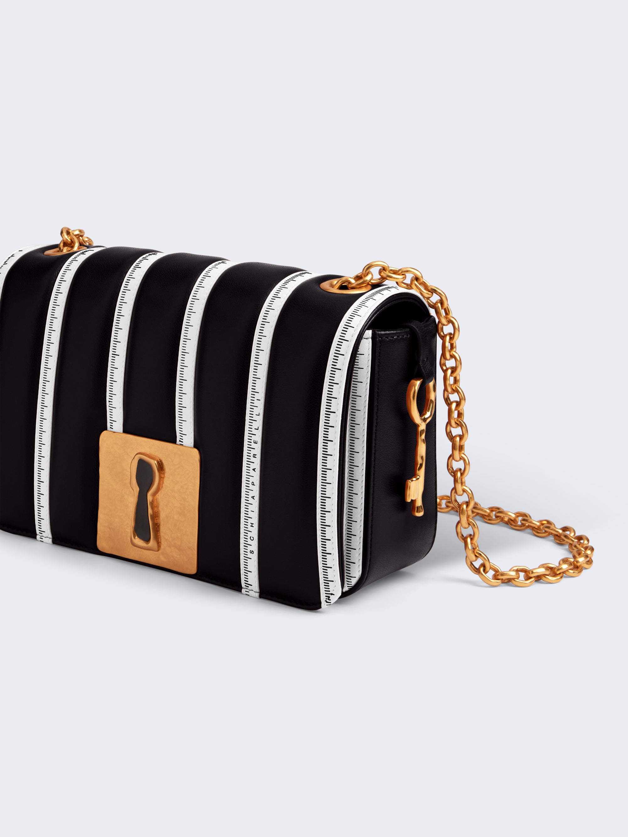 This Schiap bag is crafted from contrasting black and white trapunto leather embossed with the signature Tape Measure motif and adorned with a signature Keyhole plaque, a link chain and a gold brass Key charm on the side.