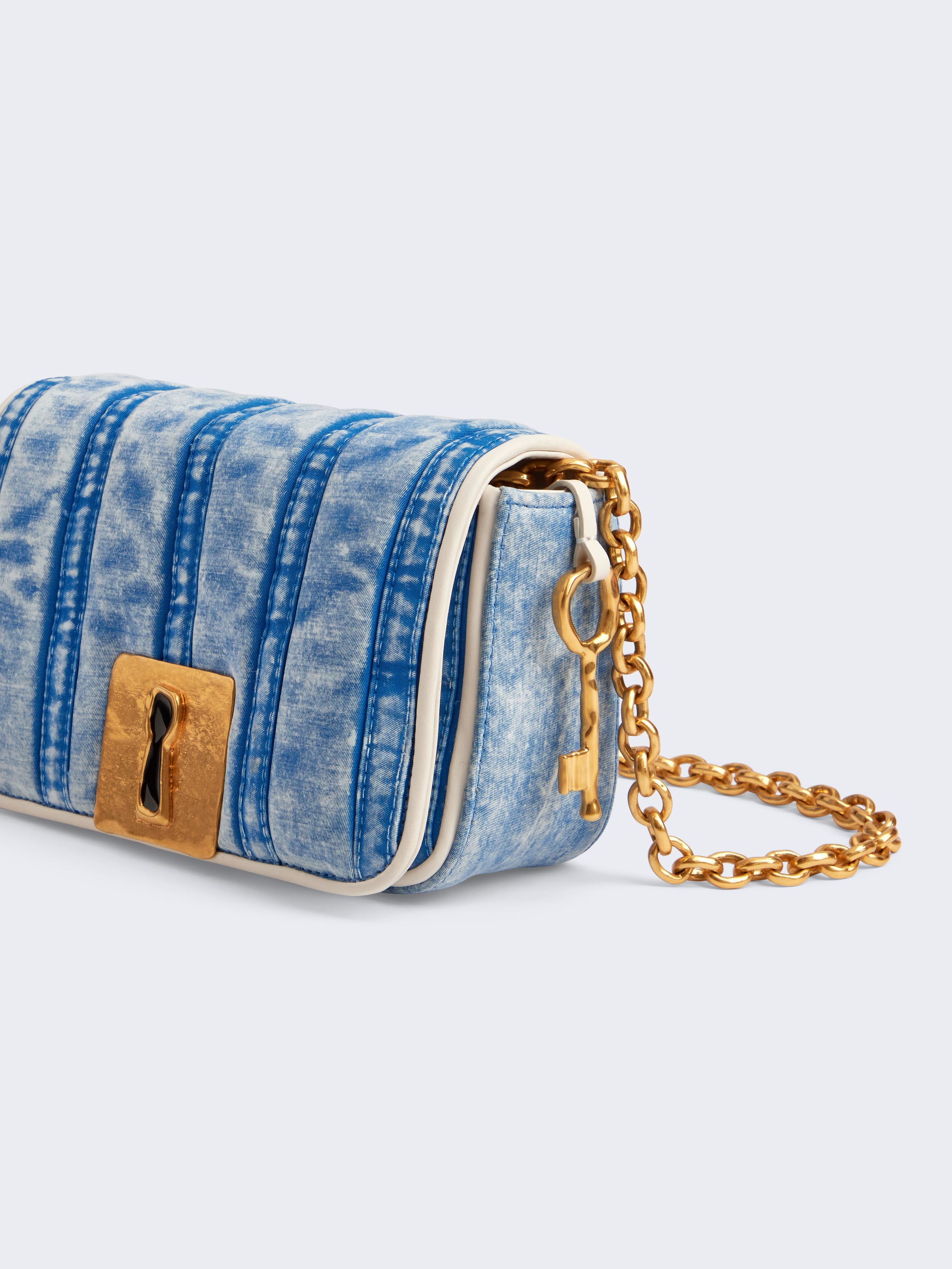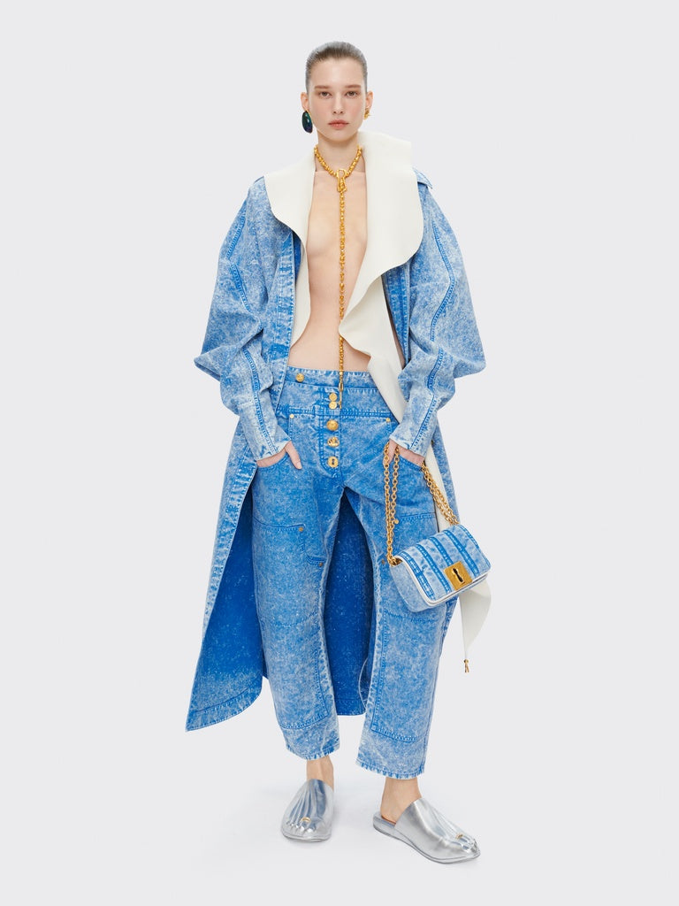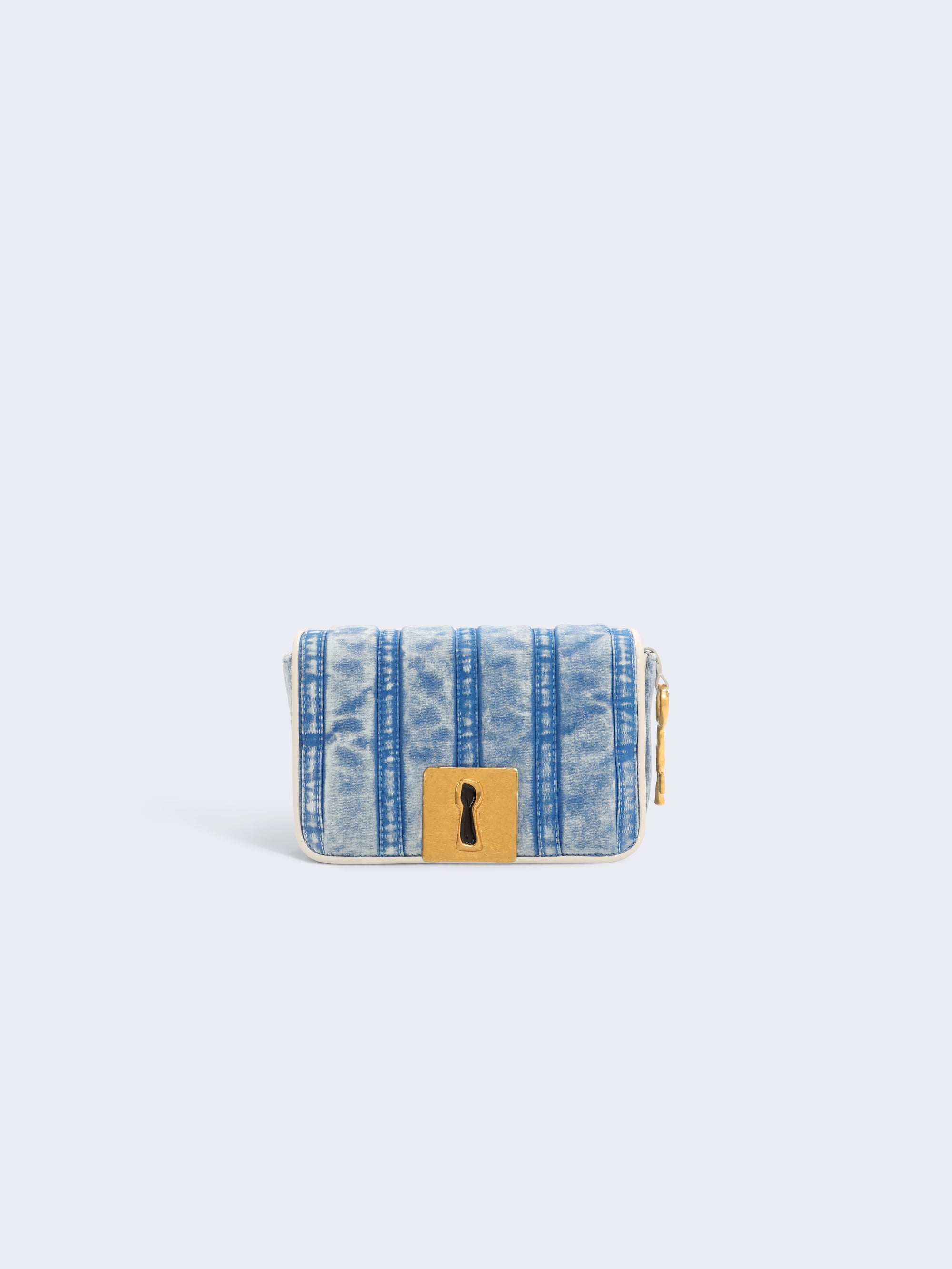 This Schiap pouch is crafted from overdyed and washed blue cotton, dubbed perfect cotton by our Creative Director Daniel Roseberry, embossed with the signature Tape Measure motif.