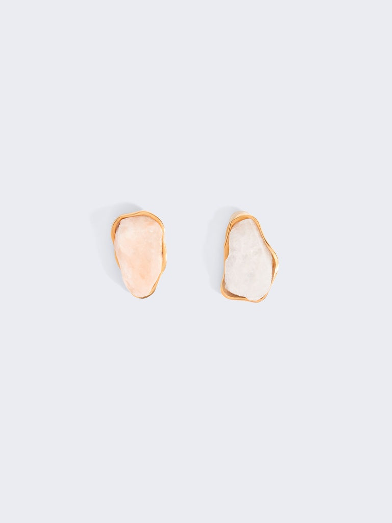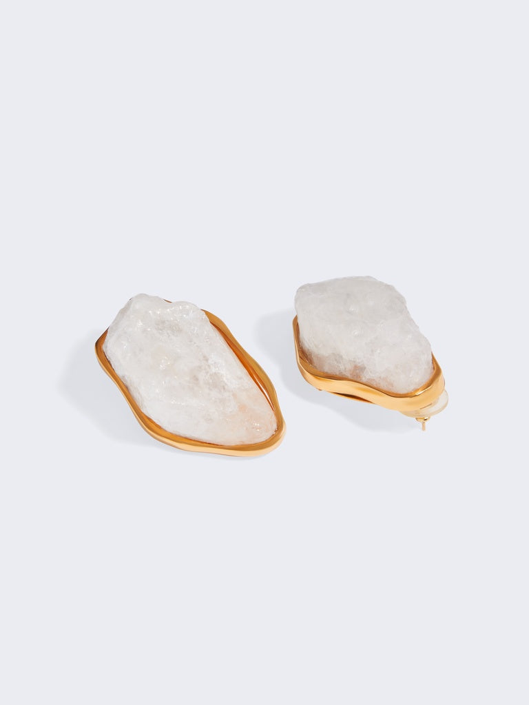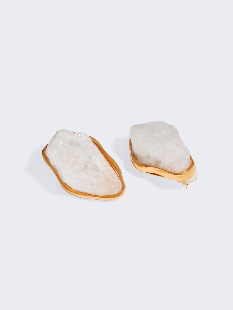 This pair of salt stone and resin earrings is inspired by the organic shapes of the collection.