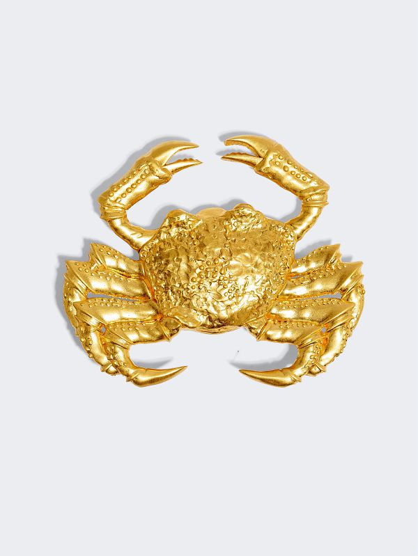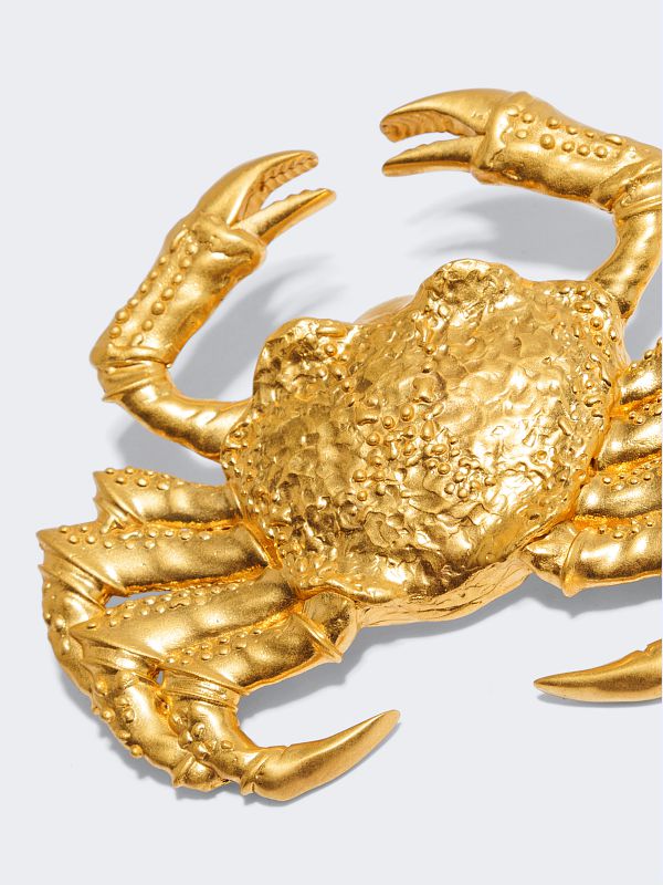 Cancer astrological sign brooch in hammered gilt brass, with Schiaparelli logo on the back.