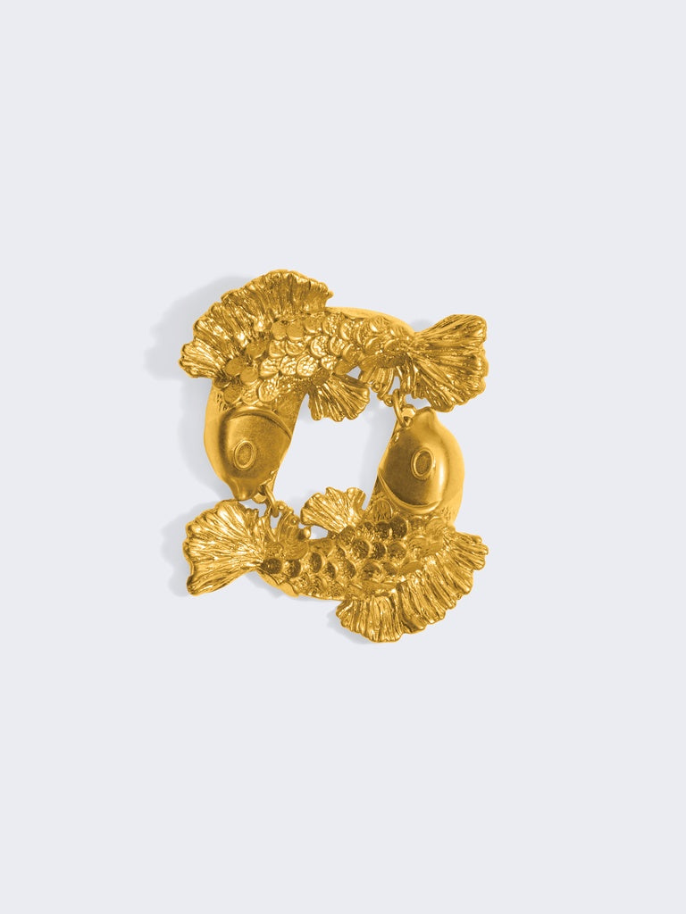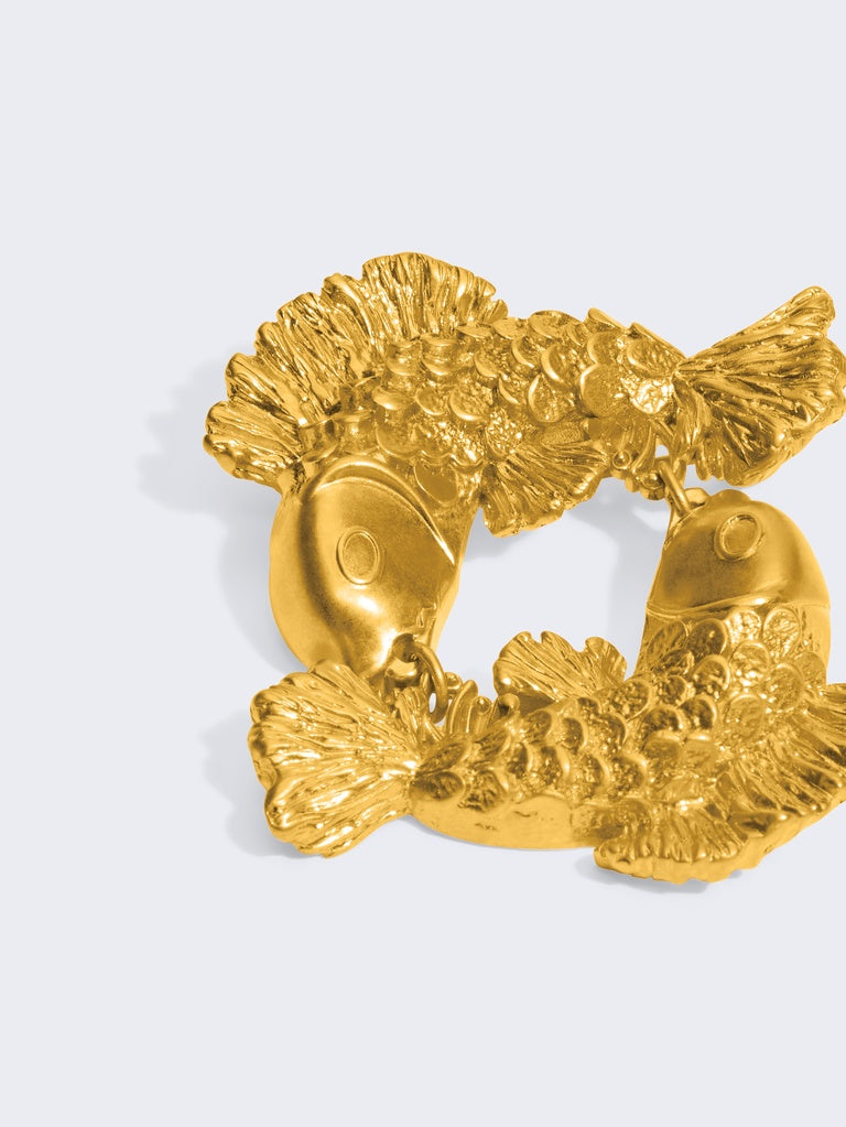 Hammered gilt brass Libra astrological sign brooch, with Schiaparelli logo on the back.