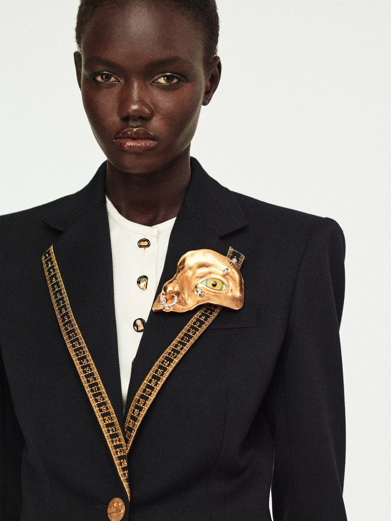 Brooch tail attachment on the back and Schiaparelli logo engraved on the back.