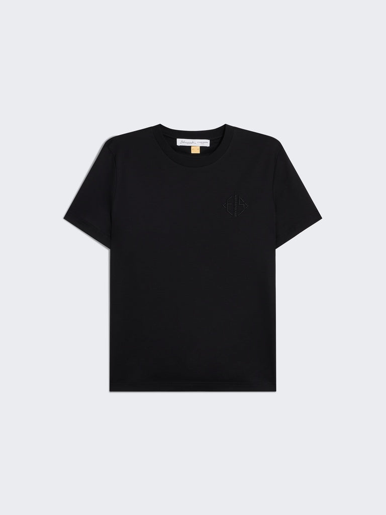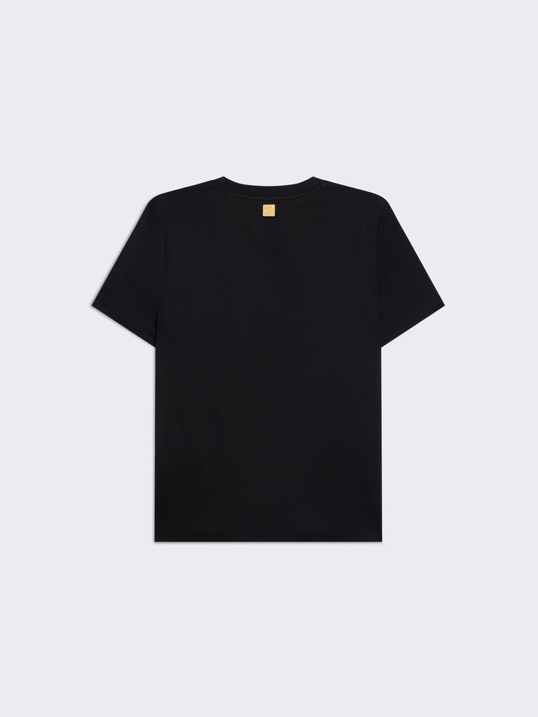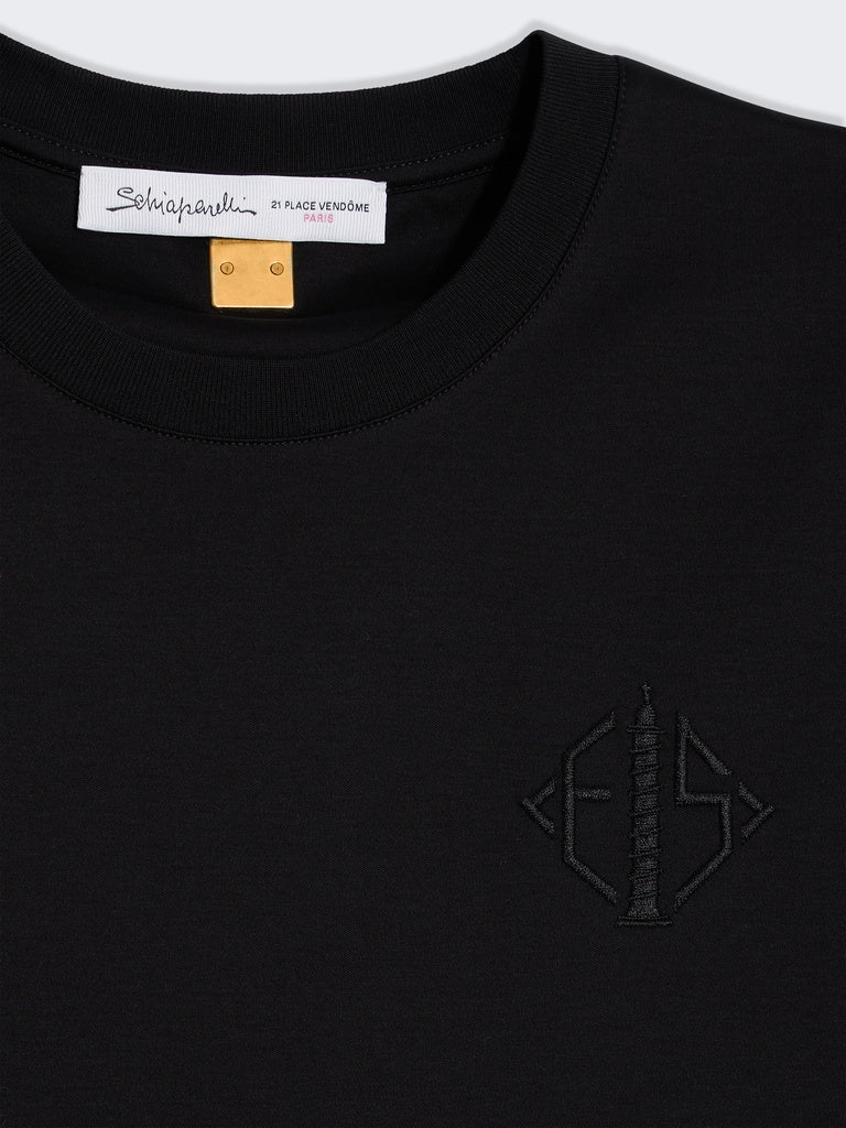 This short-sleeved, crew-neck T-shirt is made from black cotton jersey. It features a tone-on-tone embroidered monogram on the left chest and a signature keyhole rivet on the back.