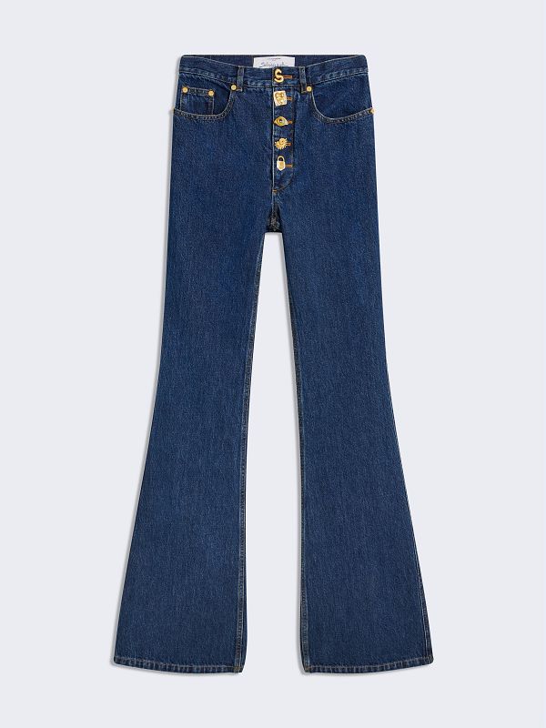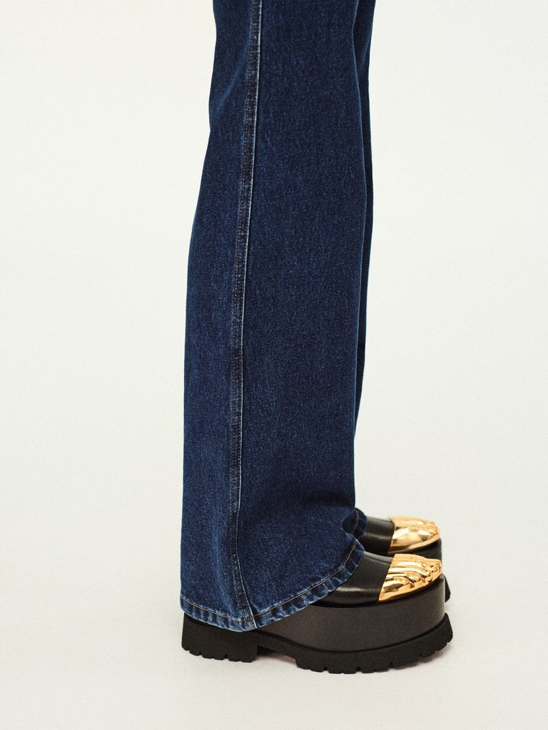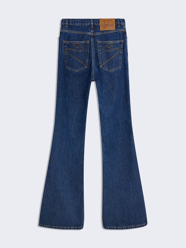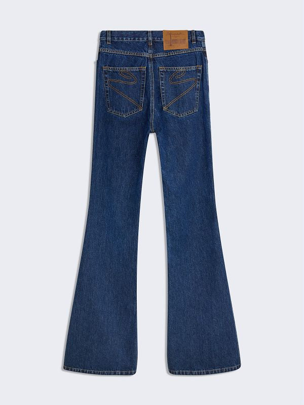 Its high waist is fitted from the waist to the knee and then flares out into a bootcut style.