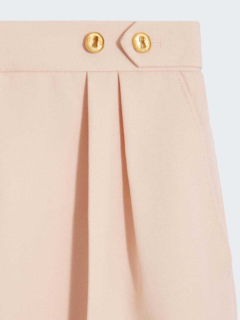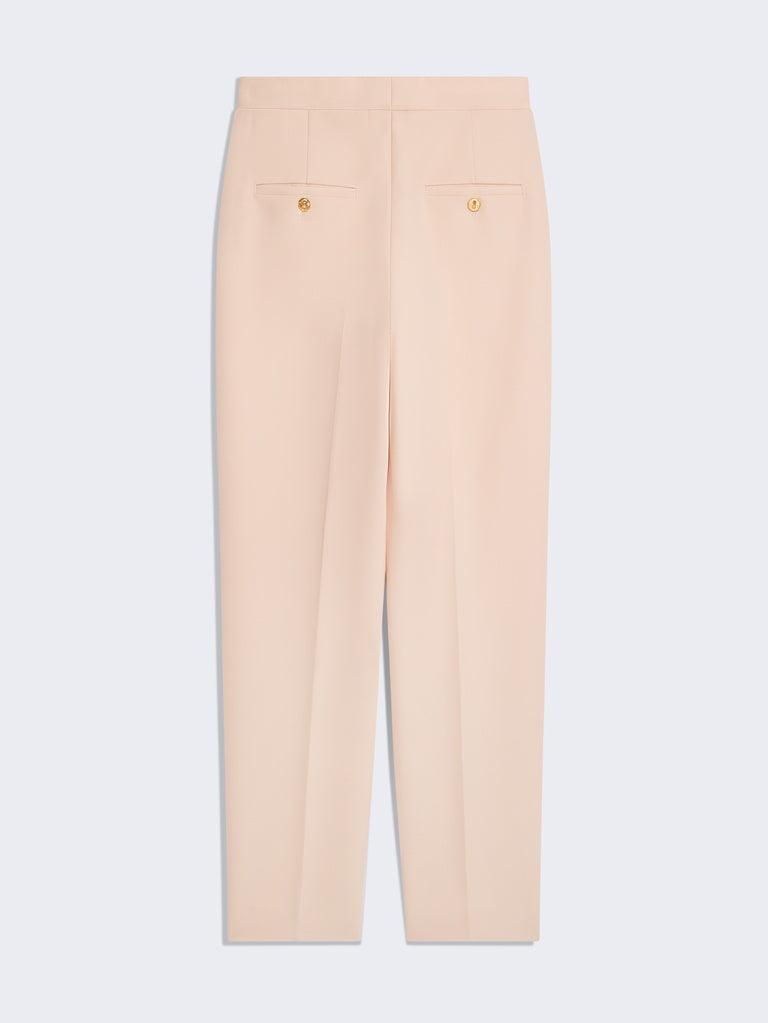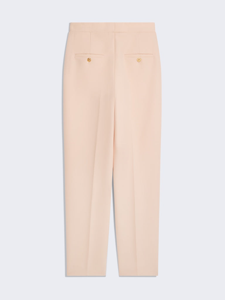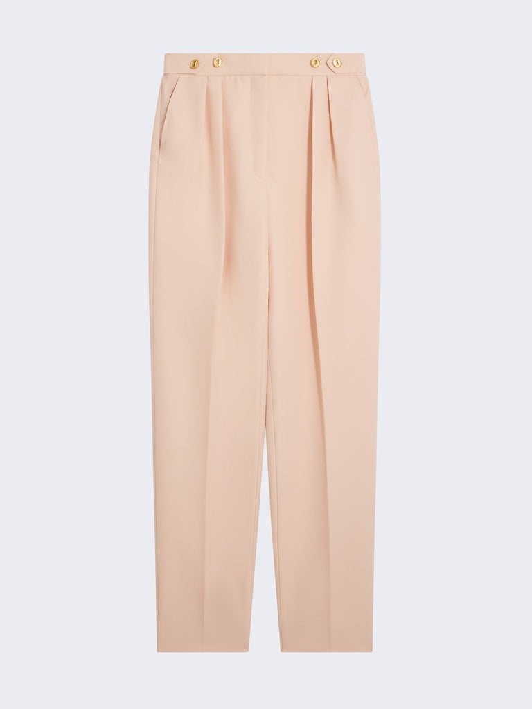 These pleated cigarette trousers with a high waist are made from pale pink wool crepe. They are embellished with hammered gold-tone brass jewel buttons at the waistband and on the back pockets.