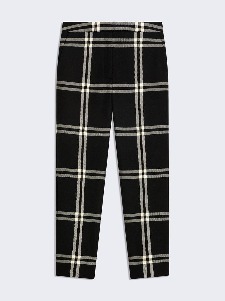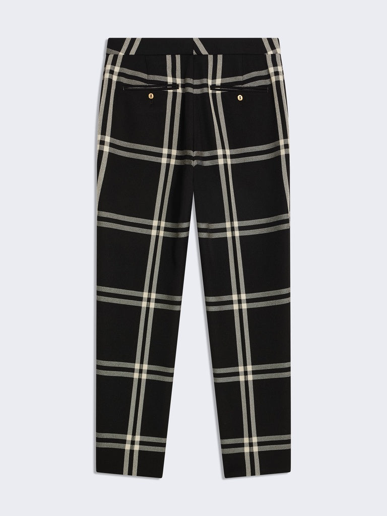 These slim-fit cigarette trousers are made from black wool twill with ecru checks.