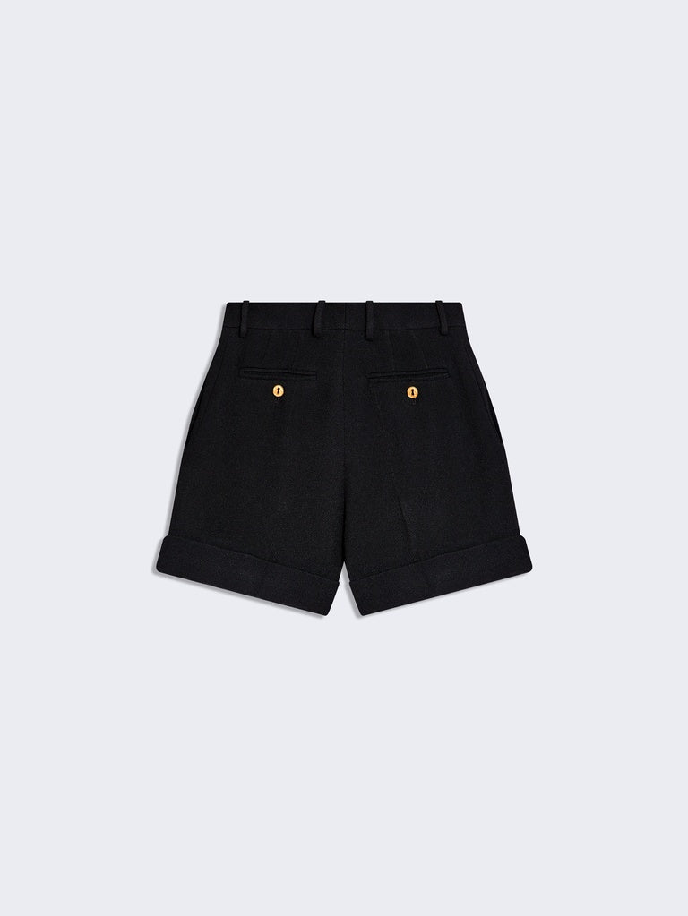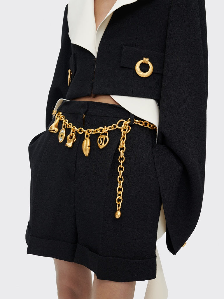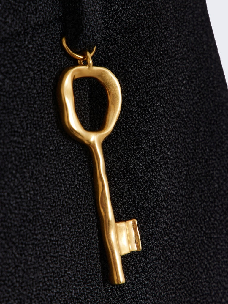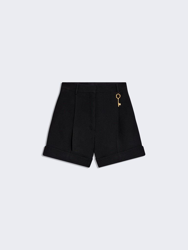 These low-rise oversized shorts are made from textured black viscose. They are decorated with a decorative key charm on the belt loop.