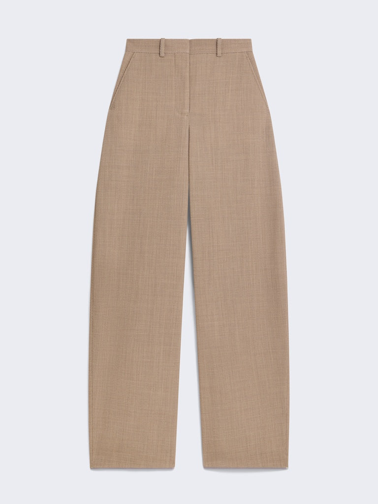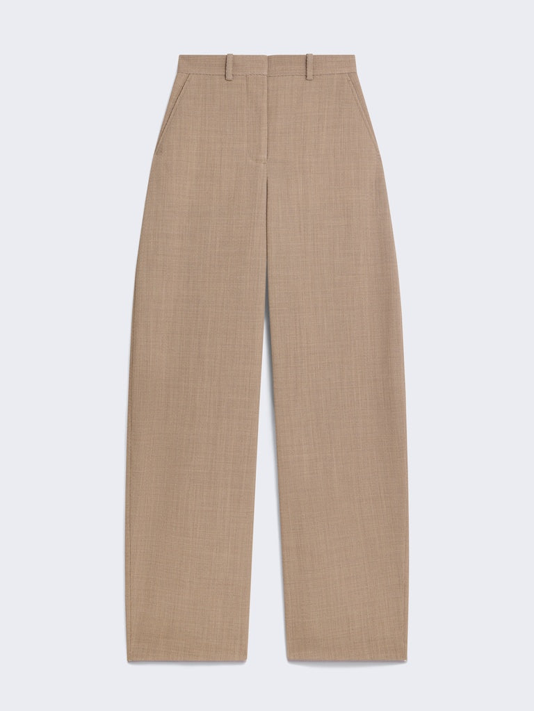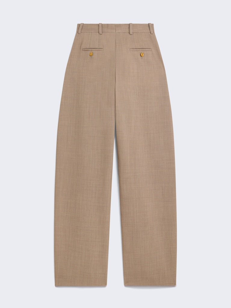 These loose-fitting cowboy pants in sand-coloured wool gabardine are embellished with gold Keyhole buttons on the pockets and back.