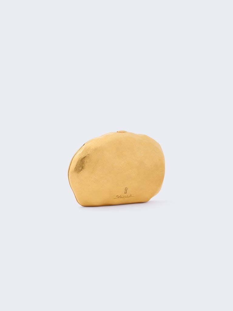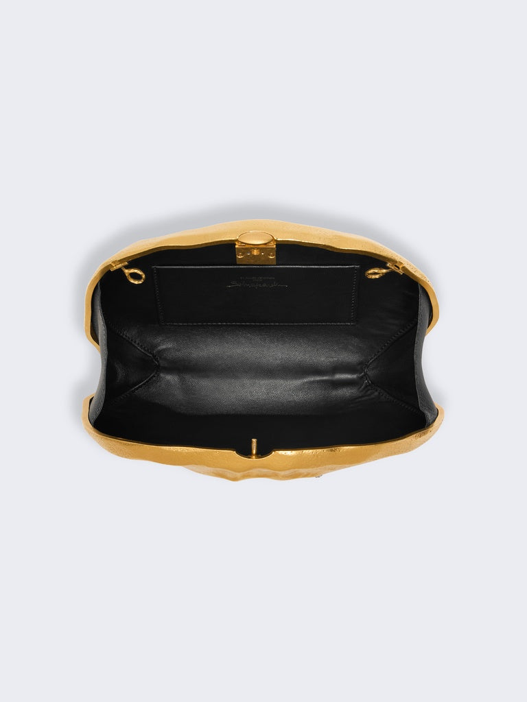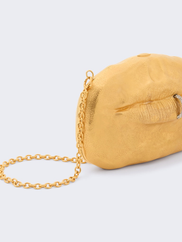 This rigid minaudière in copper alloy with lambskin interior is inlaid with a signature molded mouth.