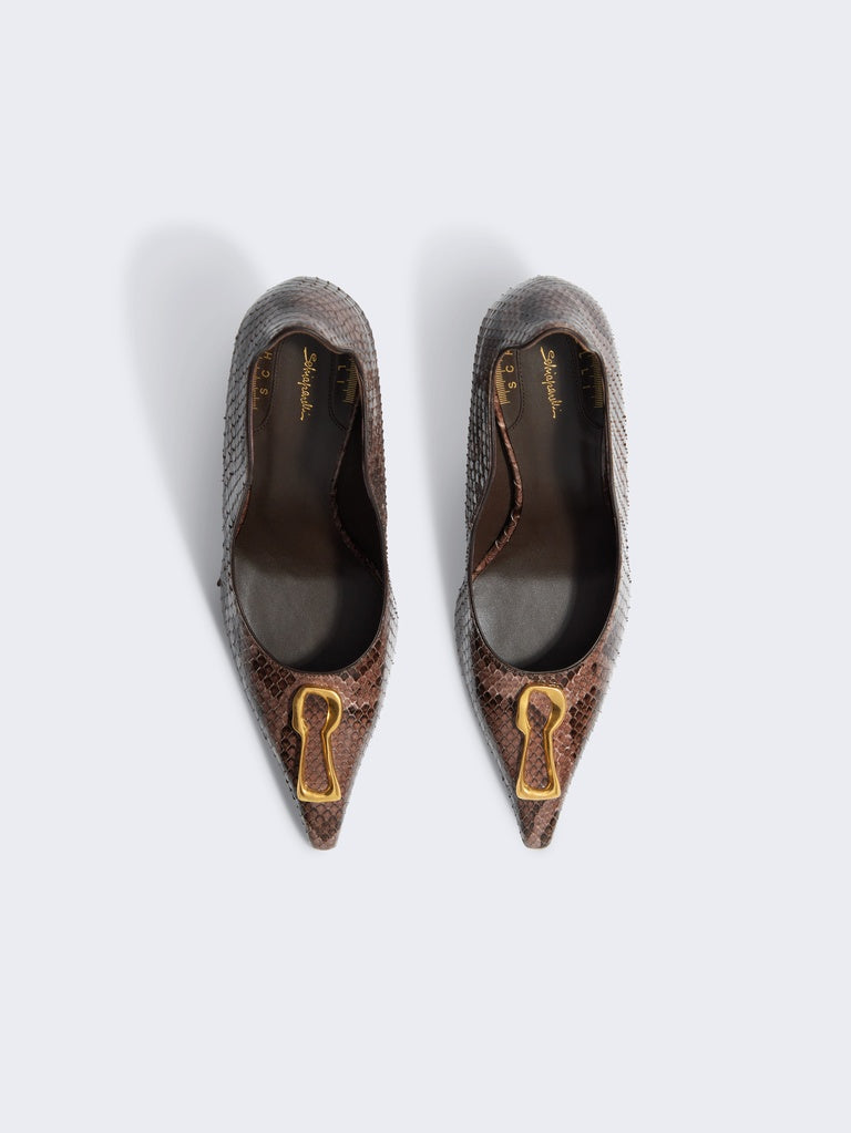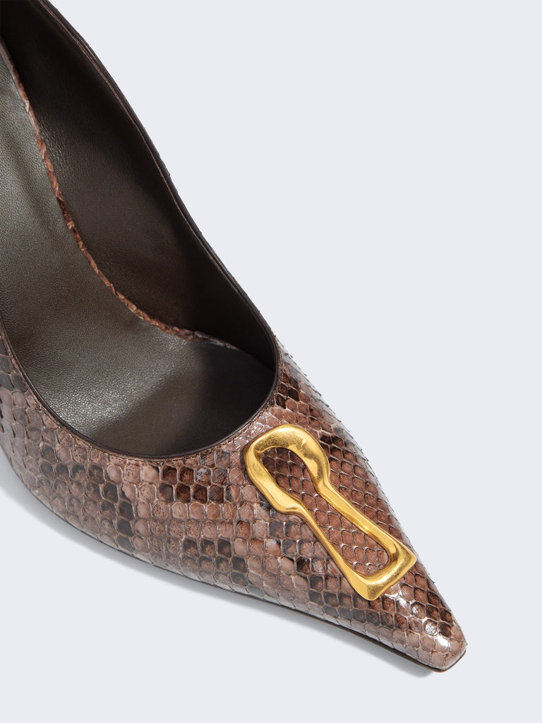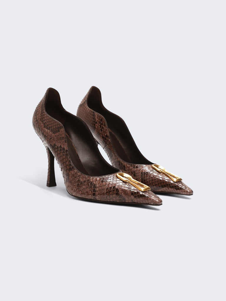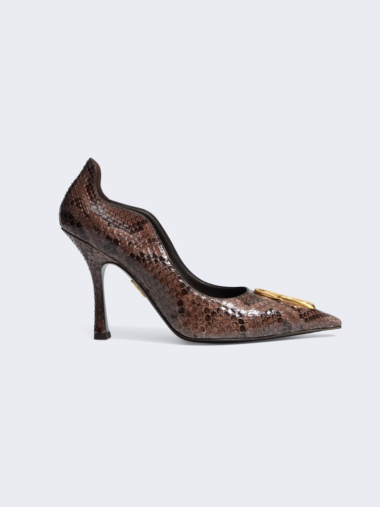 This pair of python pumps with an undulating upper enhanced with the signature Trou de Serrure detail in gold metal pays homage to one of the House's iconic codes.