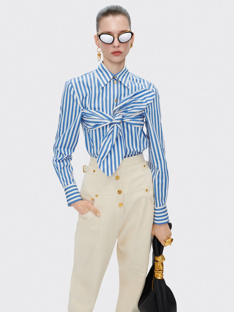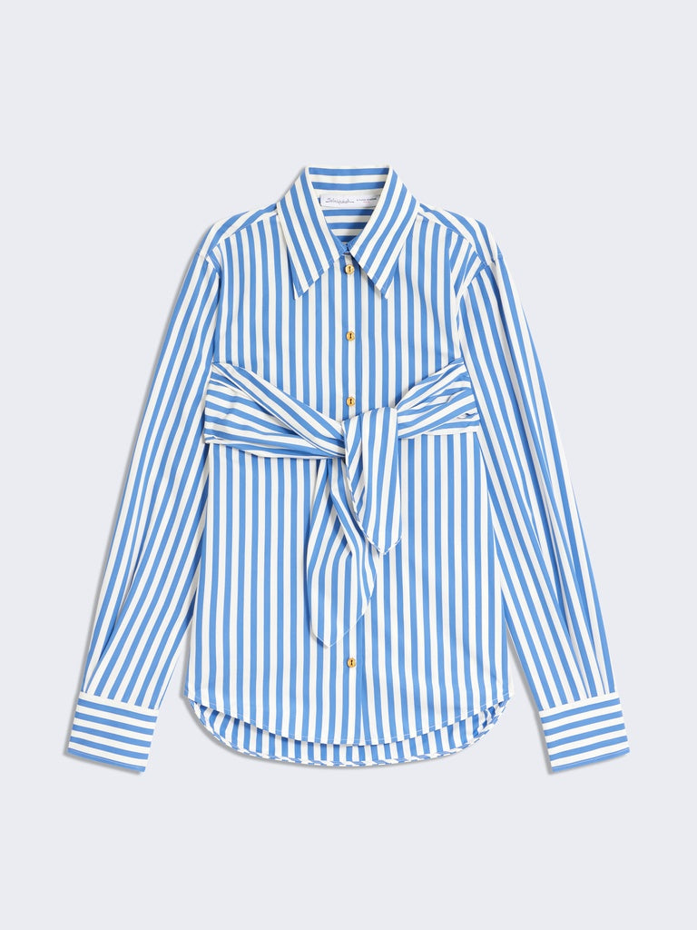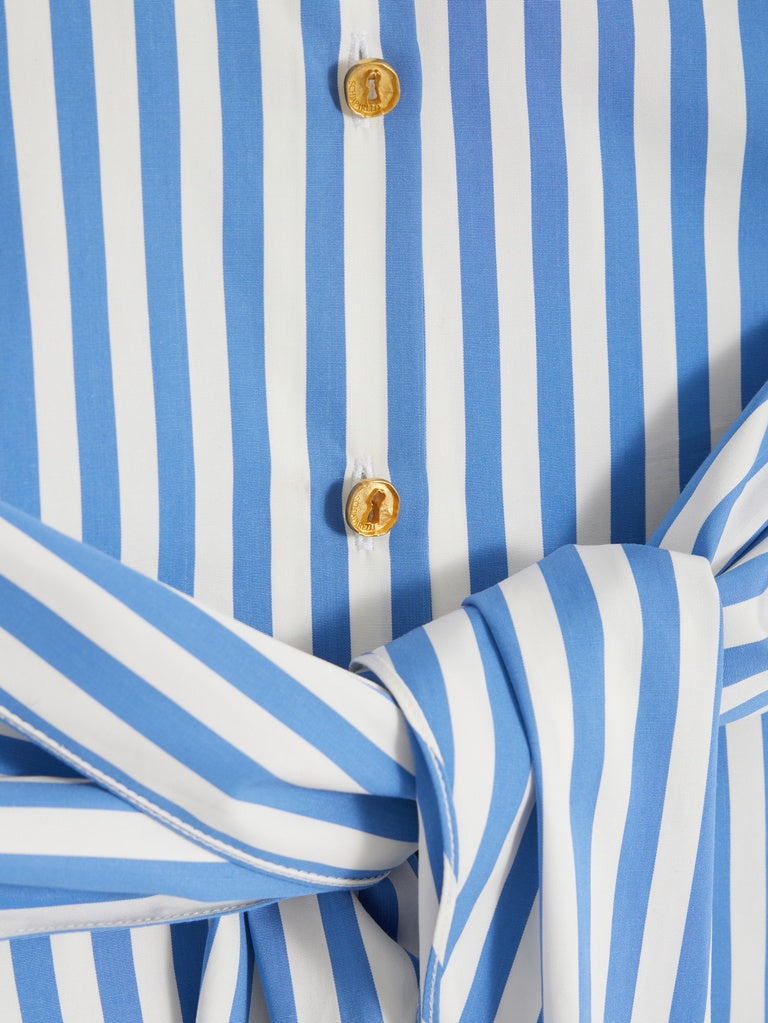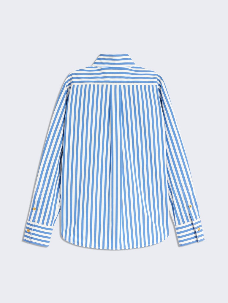 This blue and white striped cotton poplin shirt is enhanced by a matching bra panel at the front. It is finished with signature gold-tone metal Trou de Serrure buttons along its entire length.