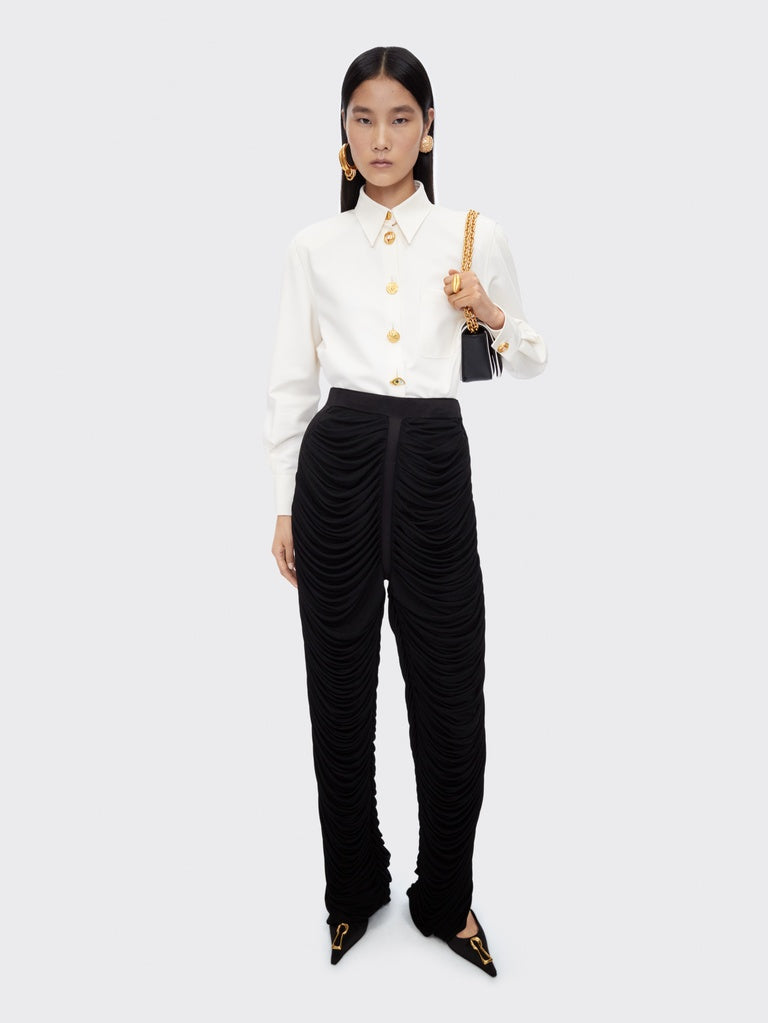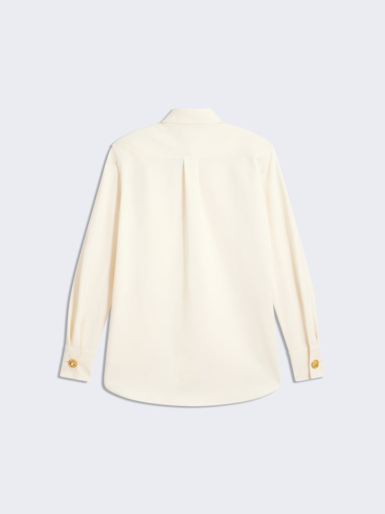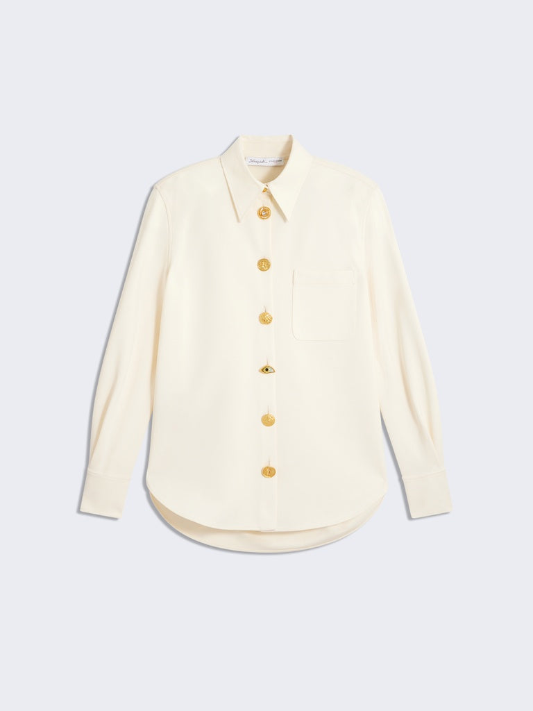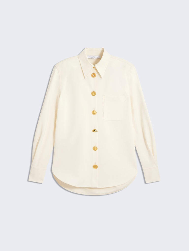This straight-cut shirt in ecru jersey is adorned with a chest pocket and hammered gold brass jewel buttons.
