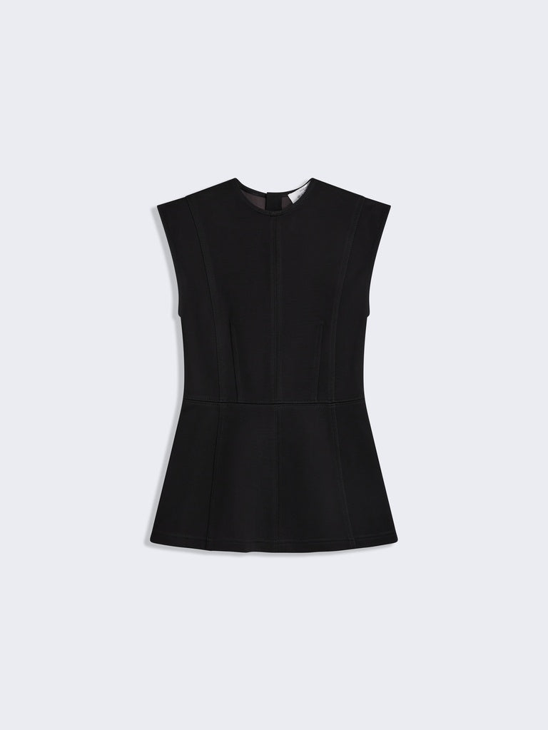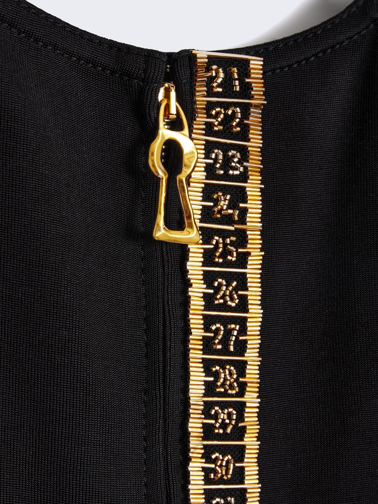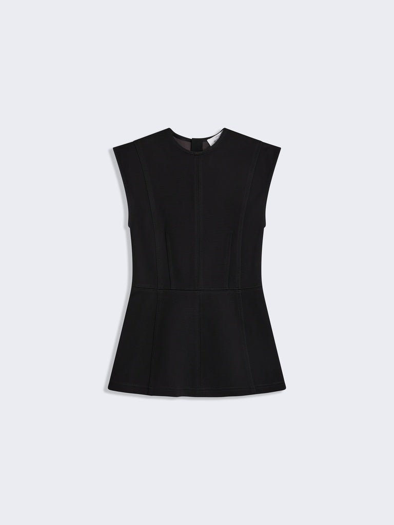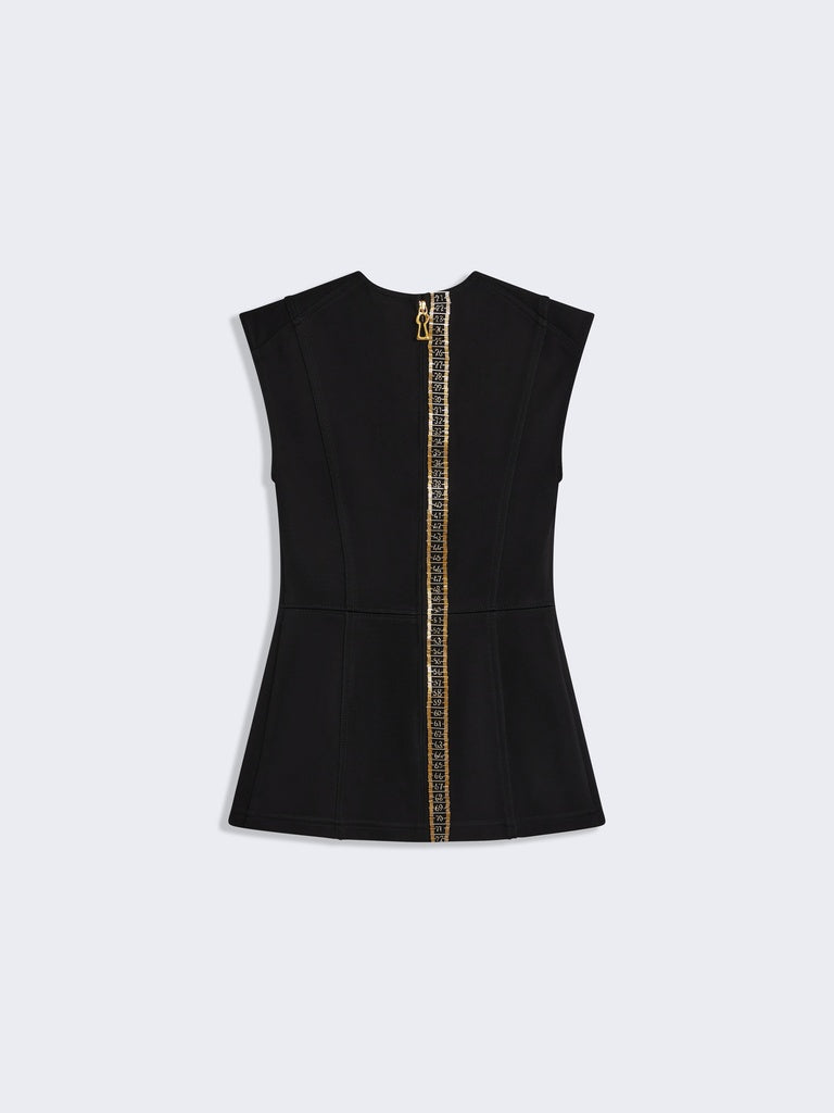 This sleeveless, round-neck top in black stretch cotton is enhanced with tone-on-tone cutouts and topstitching details, a signature Tape Measure embroidery at the armholes and a signature Keyhole zip pull in gold-tone metal.