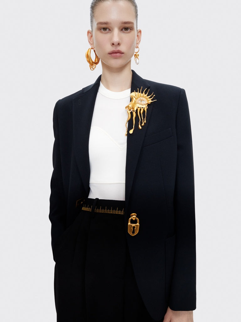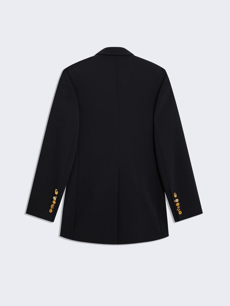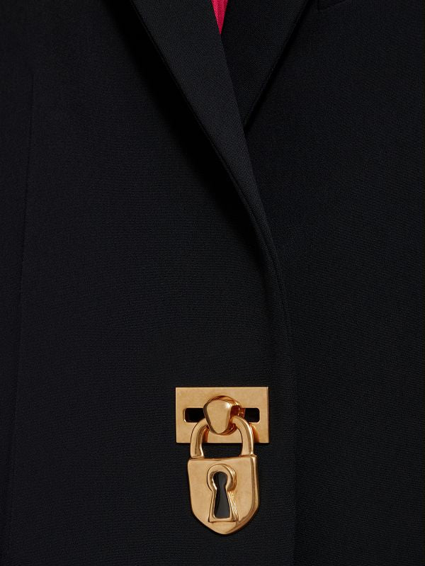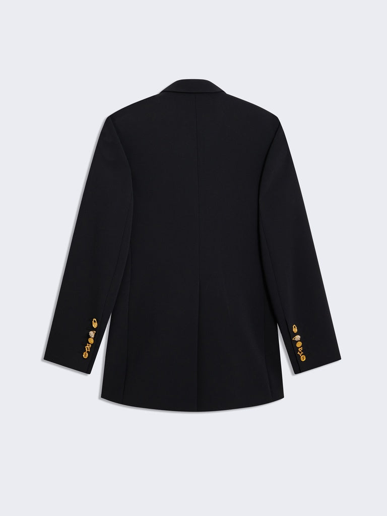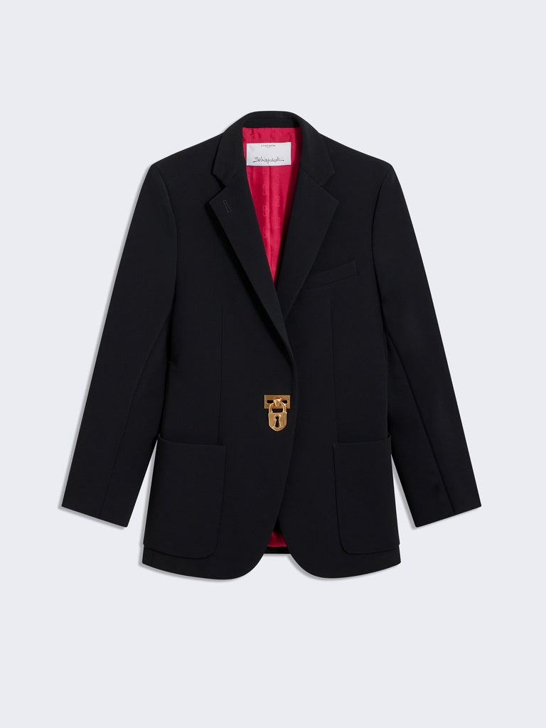 Straight single-breasted blazer jacket in white cady, Keyhole pattern on the lapel collar.