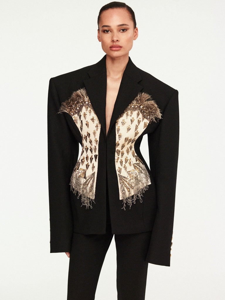 BROAD SHOULDERS CORSET EMBROIDERED JACKET