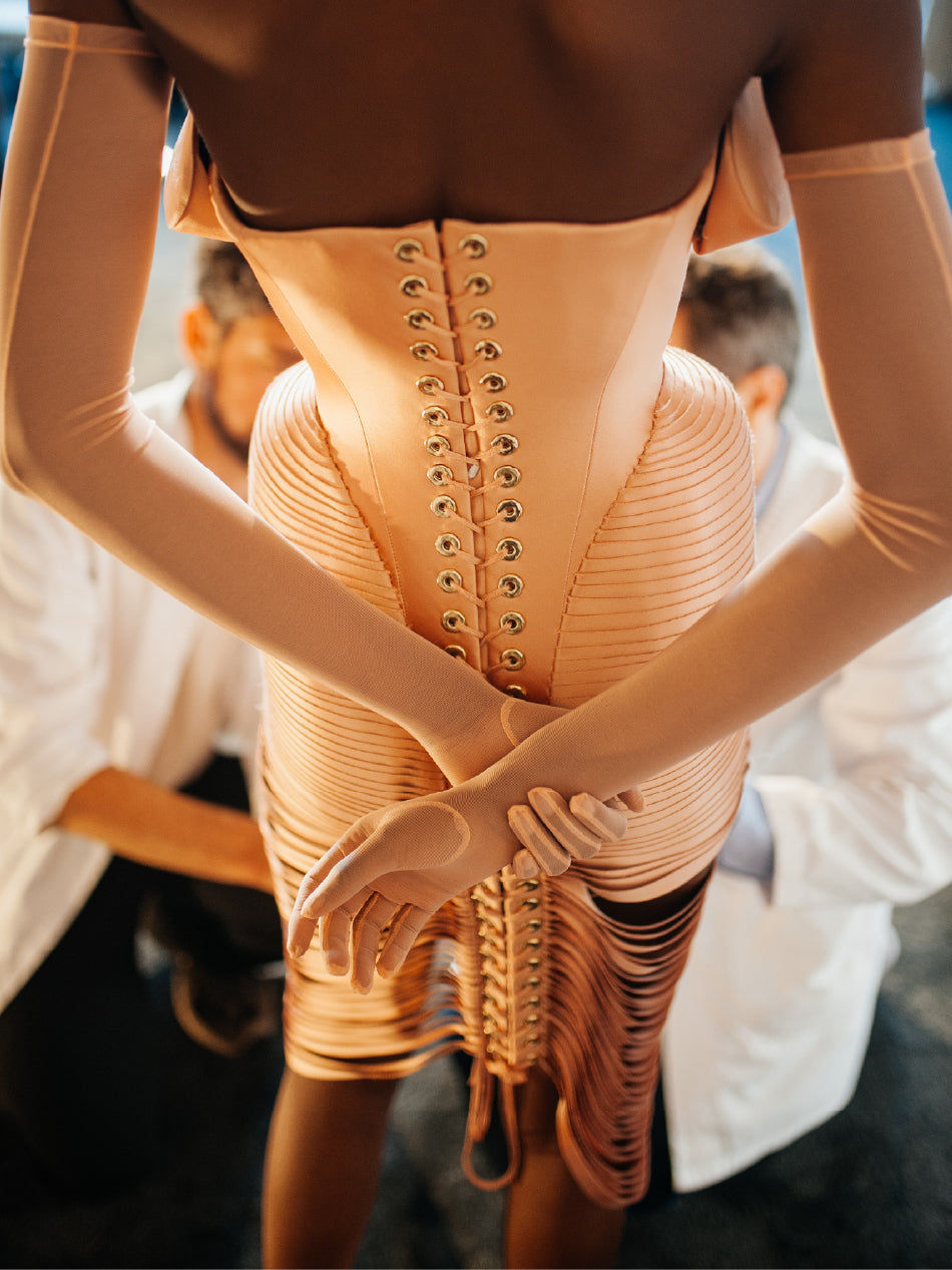 At Schiaparelli, creativity goes beyond simply designing clothes: it's expressed in every detail, every seam, every accessory. It's a constant invitation to push back the boundaries of the possible, to blend tradition and avant-garde, craft and contemporary art.