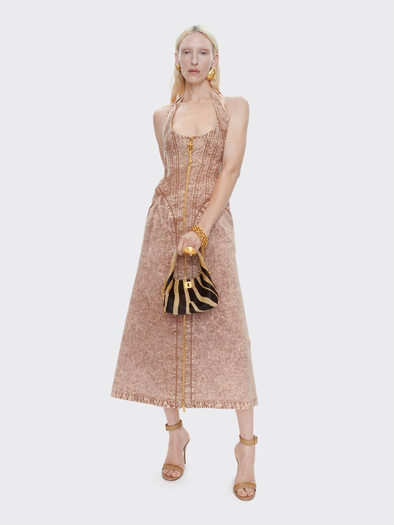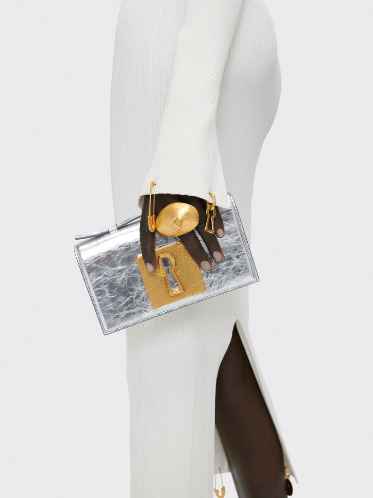 This signature Téton ring in gold-plated brass, adorned with a rhinestone piercing, has the shape of a seashell, consecrating a surreal encounter between two objects as the House likes to do.