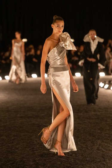 The world today can feel relentless, a cultural black hole. All creative people can do is cling to what feels right to you—to us. All we can do is move to the beat of our clients’ hearts. All we can do is make clothes that make their wearer feel the freedom and ecstasy we want to feel ourselves—on stage for a brief moment, unashamed, dancing in the dark.